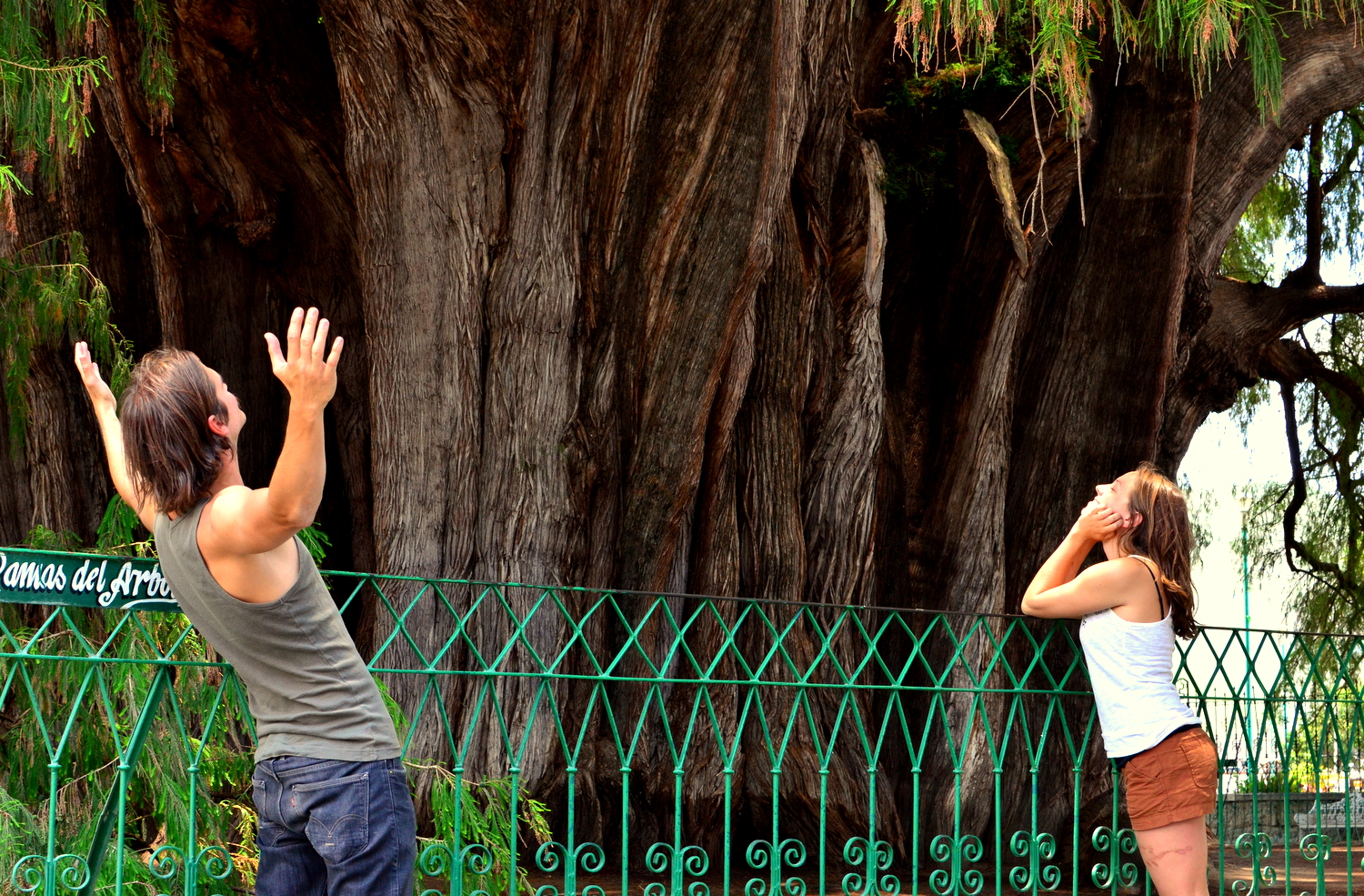 After enjoying all there was to see and do the reality of our transportation problem was at home plate waiting for the next pitch. There were a few small fees we were not privy to for entrance into the park and we had barely enough money to get back on about 2 hours of hot, sweaty 2nd class bus rides. With Elissa and the mountains as my witnesses I put it out into the universe that someone will be returning back to Oaxaca in a rental car and have extra room for us to bum a ride. We walked back to the pools to have another swim and to take a few cannonball photos when we were asked by a man named Matteo to take his photo at the main pool. Matteo was from San Francisco and traveling for pleasure and research for his Mexican restaurant in San Franscisco on a 2 week tour of Oaxaca and the coast. Matteo offered us a ride and off we went. We had great conversations about the experience of traveling, relationships, and taking things as they come into your life. He didn’t have time to visit El Tule yet so a wrong turn serendipitously brought us right back to the little town center on Earth Day. We quickly went and saw the giant arbol again before heading back into town. If you ever are in Bay Area zip on over to Taco Jane’s in Marin (http://tacojanes.com/) and tell Matteo that Dan and Elissa from Oaxaca sent you.