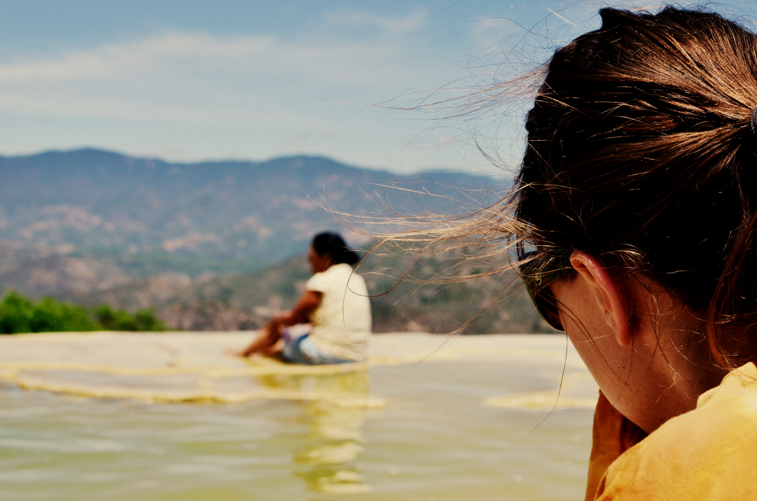 On earth day we made a trek for the little town of Mitla, about an hour outside of Oaxaca’s limits, to catch a collectivo for Hierve el Agua. Our adventure started off at the 2nd class bus station in Oaxaca, which consisted of a concrete canopy housing the front end of about 2 dozen banged-up buses in a large, open dirt depot complete with a pile of rubber tires at the entrance. After arriving in Mitla other travelers were tired of waiting for the camionetas the guide books told of and we arranged similar fare in taxi cabs for the hour ride into the mountains. After the first cab filled up with 6 travelers we got into the 2nd cab along with 8 other locals in the back. There were a total of 11 beating hearts in one Toyota corolla for an entire hour. If I could have grabbed a picture of this I certainly would have but the upper half of my body was hanging out of the window for the duration of the ride and it was best to hang on instead.