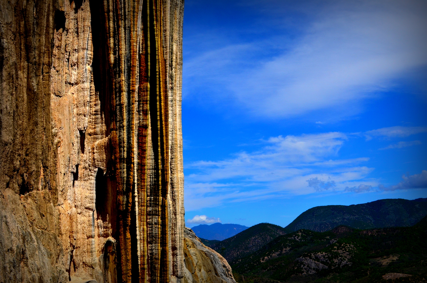 Hierve el Agua is a natural phenomenon comprised of an artesian spring high up on a bluff in the Oaxacan mountain range. It’s water is saturated with calcium and other minerals that has slowly deposited layers upon layers of calcium carbonate enriched with other minerals, giving the appearance of petrified waterfalls that are frozen in time. The park preserved this unique phenomenon by building two infinity pools where people can swim and soak in the cool, mineral rich waters and explore different vantage points for views of the cascades.