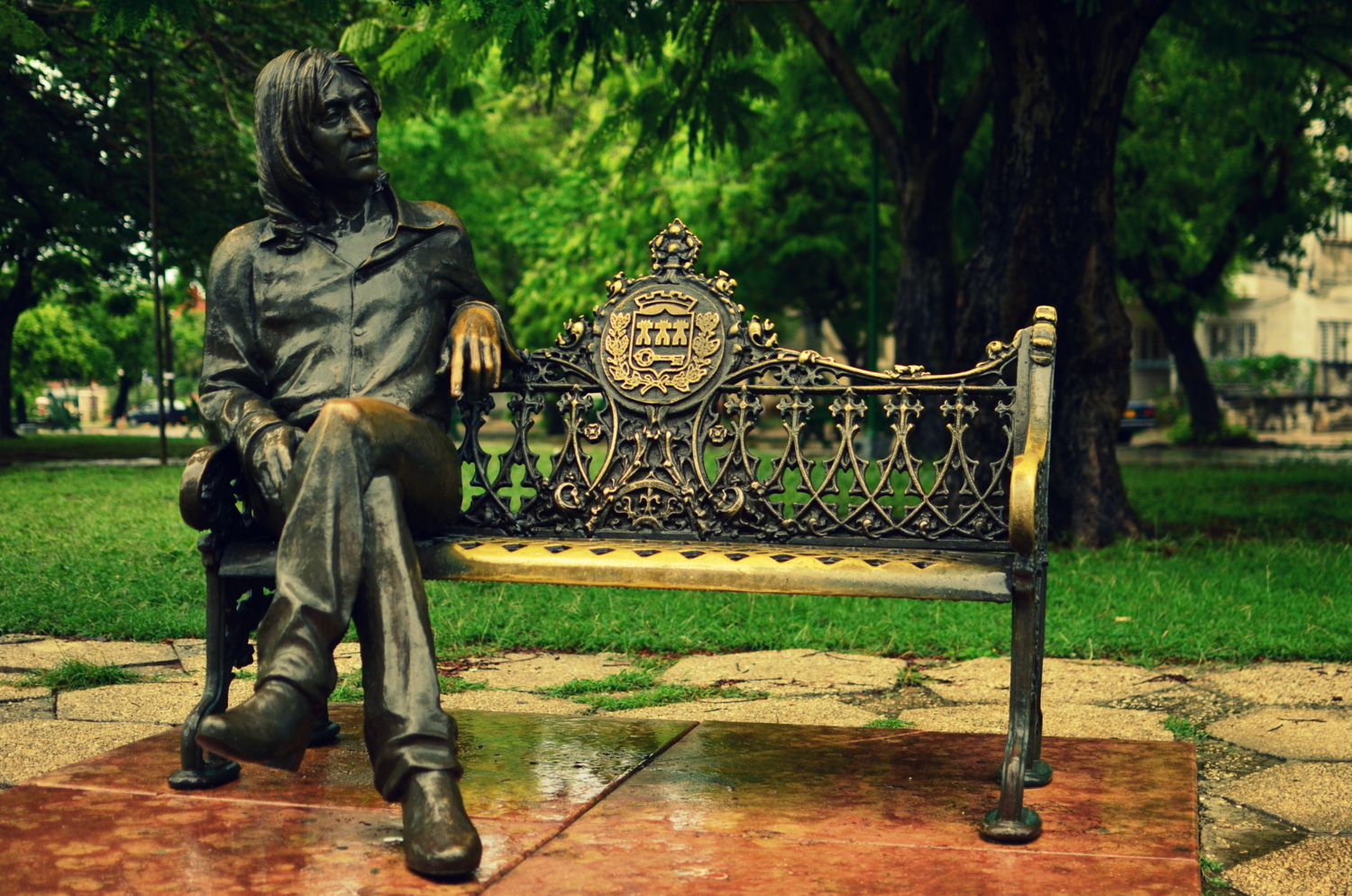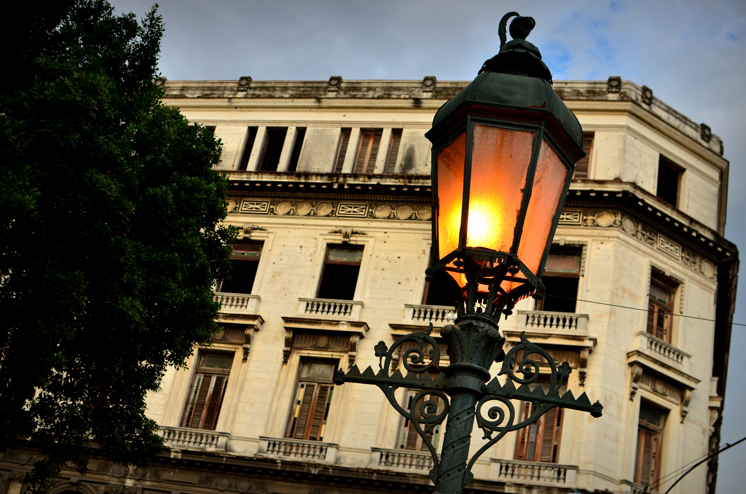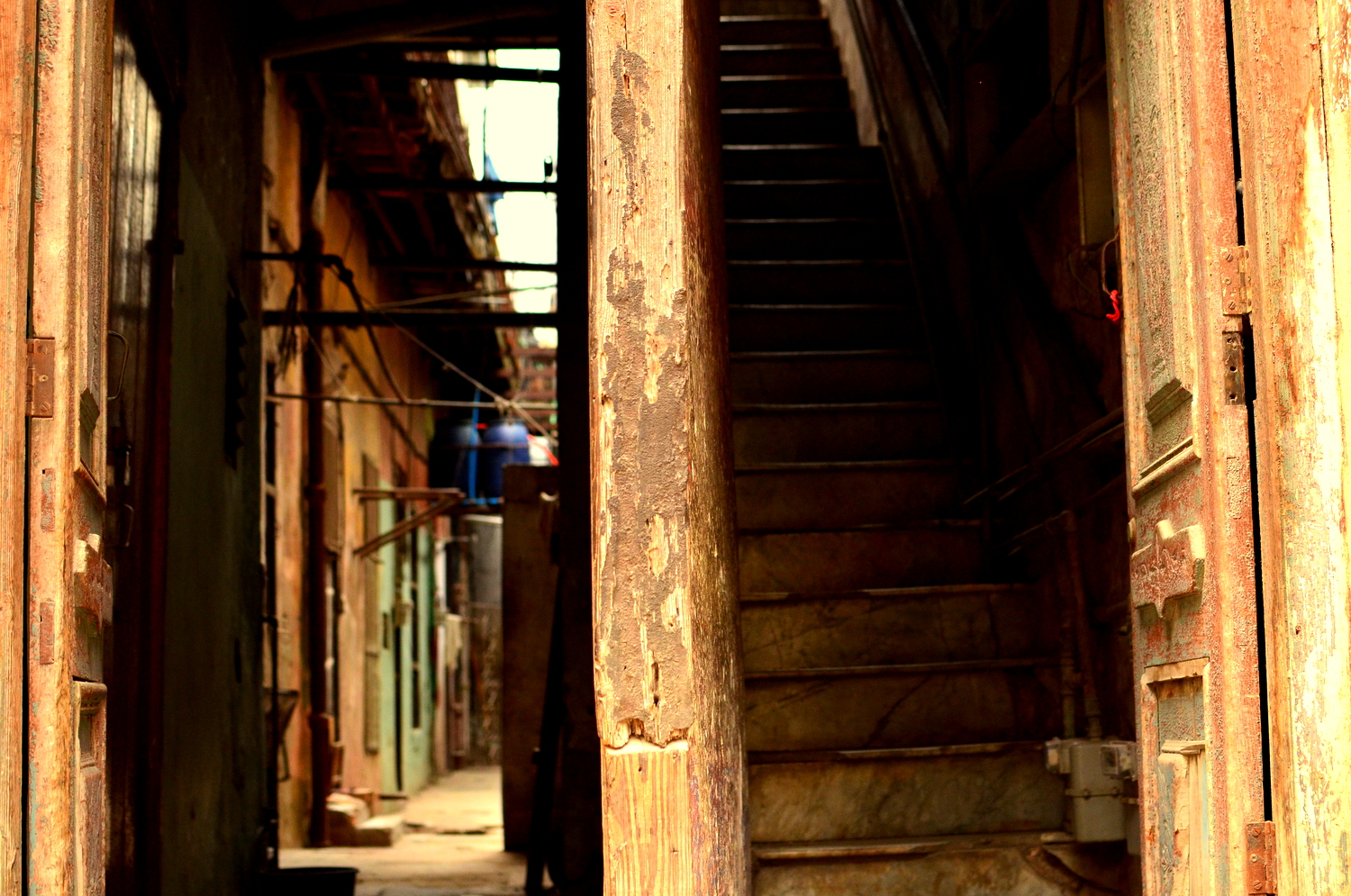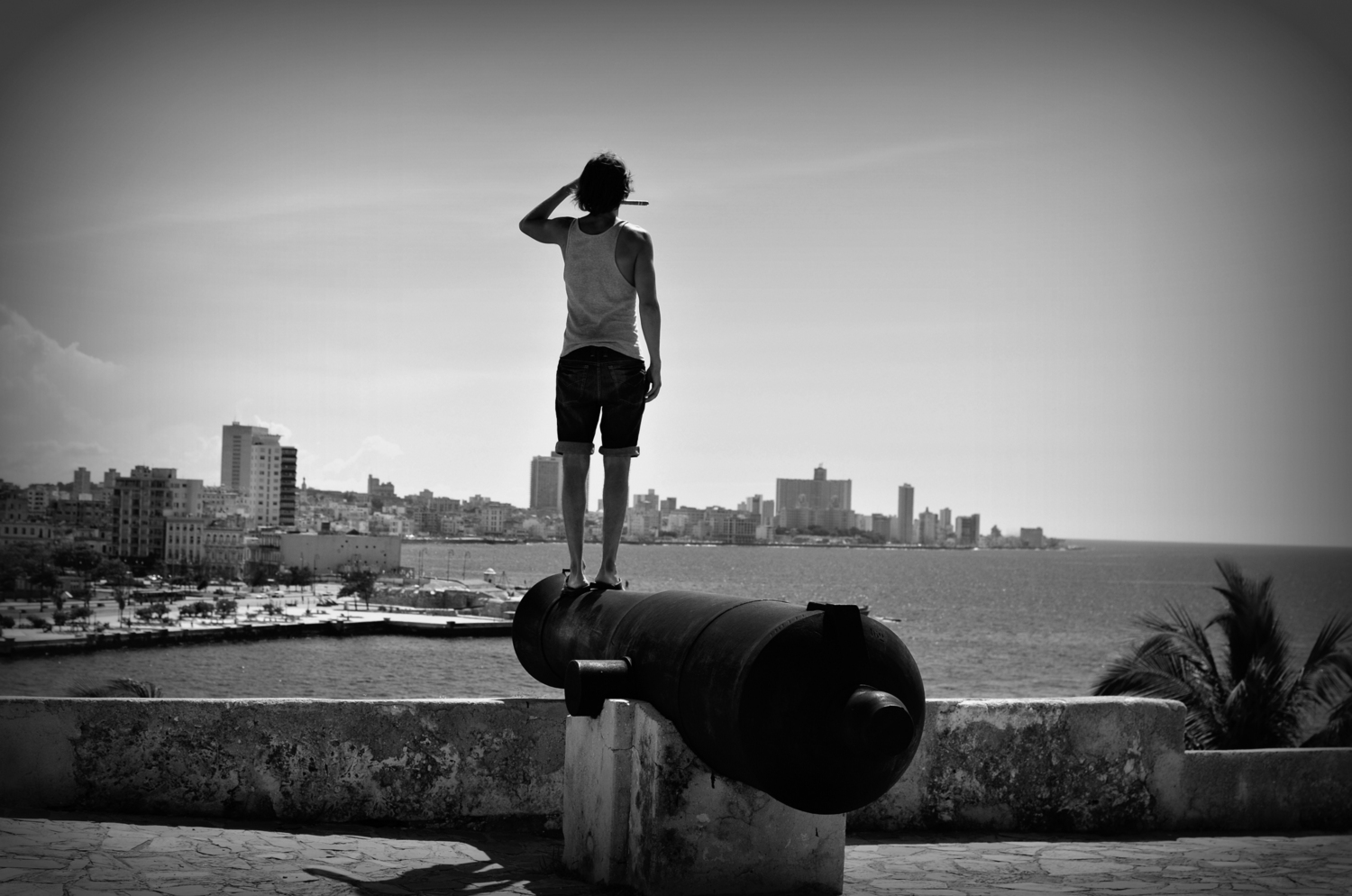 We made it part of our duty to see the massive display of artwork the Bienal was showcasing at the Castillo on the other side of Habana’s harbor.  The Castillo is a war fort of the past (built in the 1700’s) complete with massive cannons aimed towards the city, moats protecting it’s foundation, and giant limestone blocks reinforcing it’s outer skin.  This was a very unique setting for a modern day art exhibition.  The Cuban art scene consists of an otherworldly talented pool of highly skilled artists who produce amazing pieces ranging from paintings, drawings, photography, videography, collages, metal works, pottery, and conceptual.  We spent hours wandering the fort in the hot heat while the artists themselves were hanging out in their designated spaces chatting to anyone who wanted to talk about anything.  One  unique installation consisted of an entire hollowed out palm tree with light bulbs inserted into it’s trunk in an otherwise pitch black empty room.  The roof of the castle was not roped off so I naturally climbed up for a bird’s eye view of the city and the horizon lines. When we got back into town we took a guided tour through the Teatro Nacional, Cuba’s gorgeous, otherworldly home for theatre, ballet, and dance performances.  Exploring through the grandiose architecture was a definite trip worth every penny.  The tour took us through old rooms with workers repairing chandeliers and fixtures, libraries and study rooms, and right in front of a practice room filled with dozens of performers training in class.  We could only catch a tiny glimpse of what was going on through a tiny rectangle where clouded glass used to be, watching dancers jump, move, and pose with the soundtrack of 40 feet stomping in a choreographed unison. The thunderous noise echoing off the walls boomed right through our bodies as we listened and imagined what it really looked like on the other side of the portal.