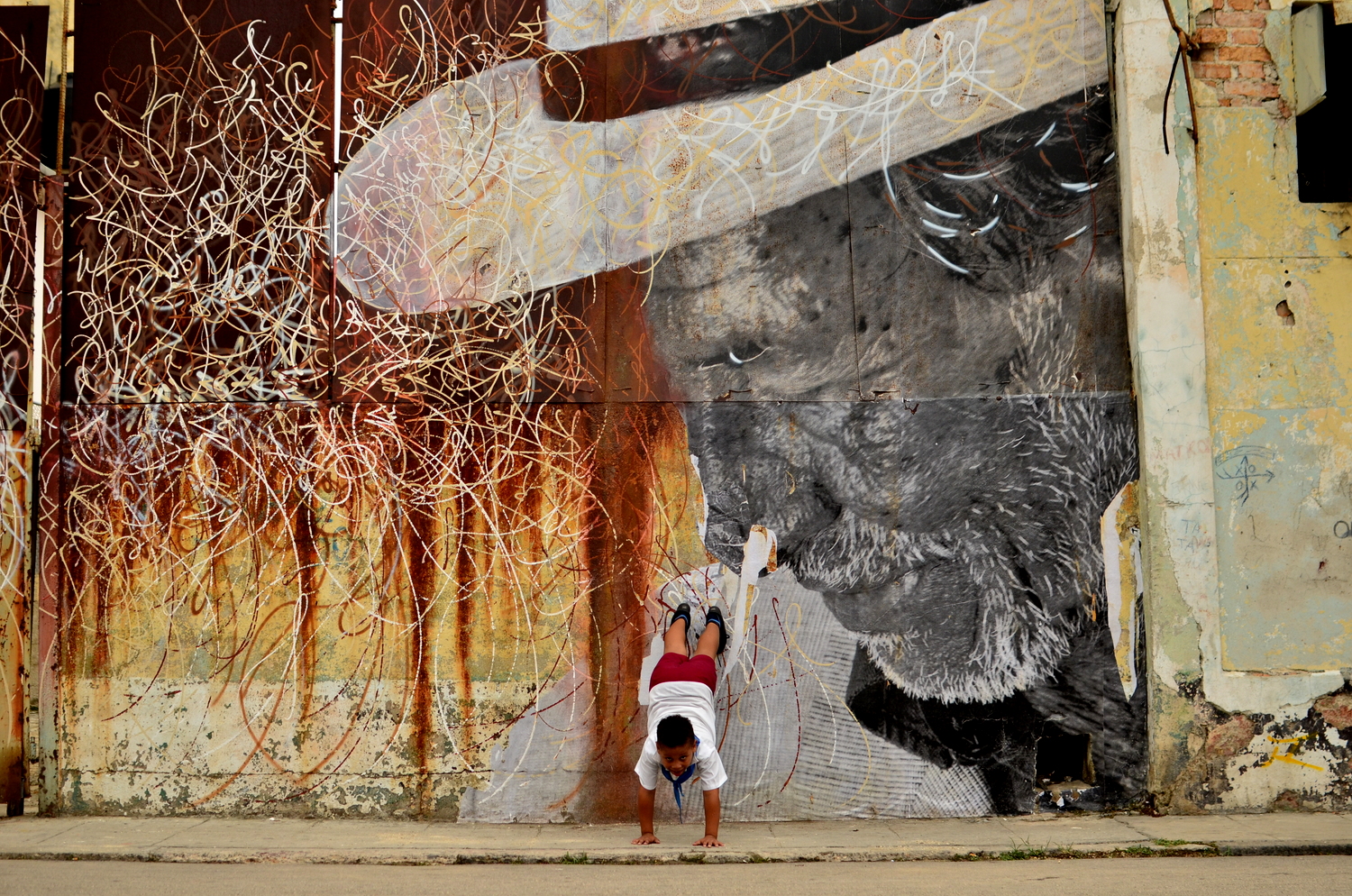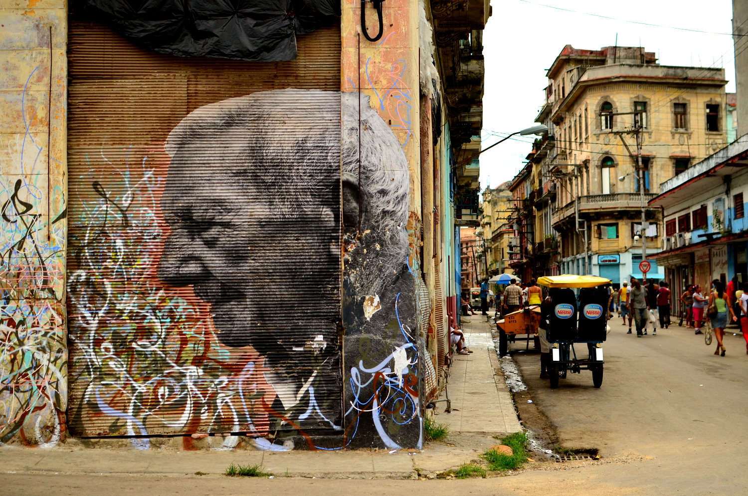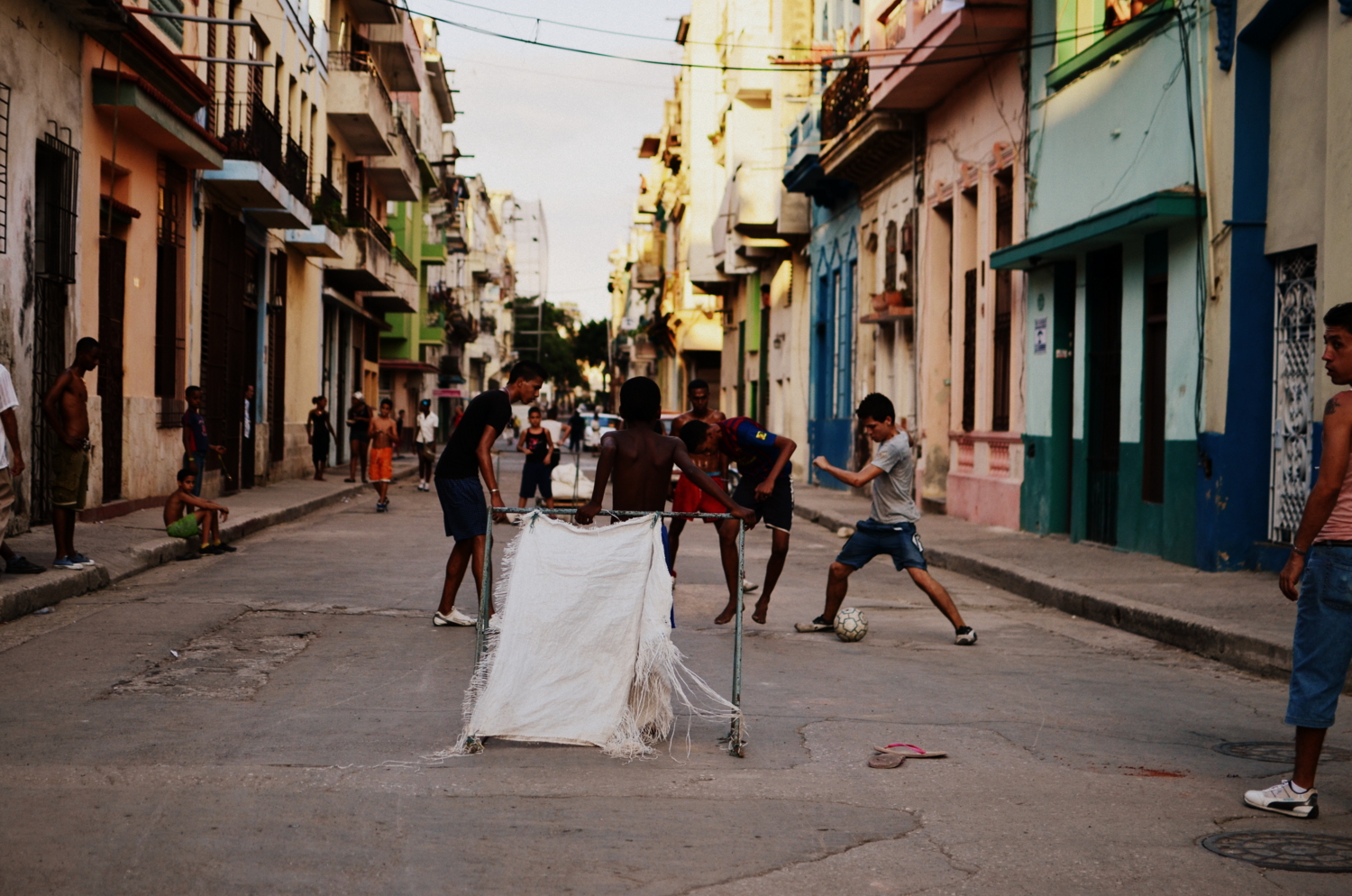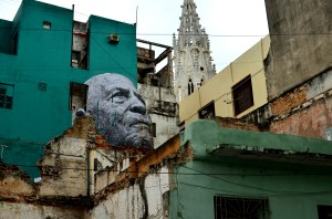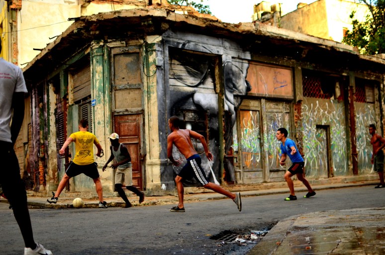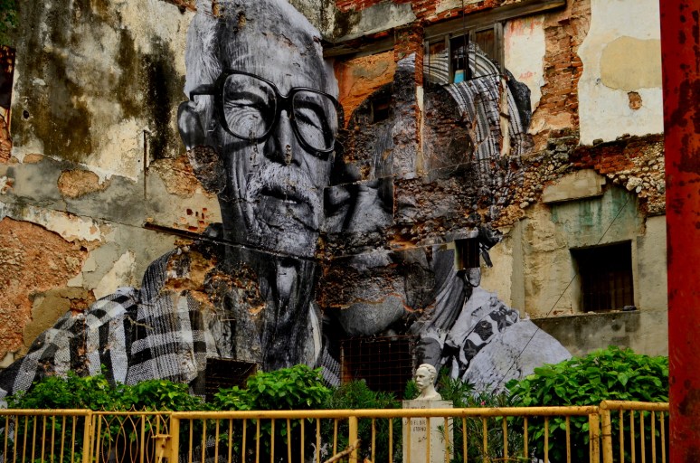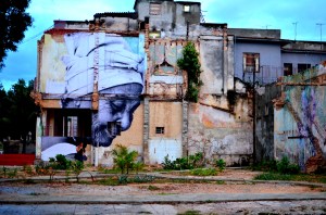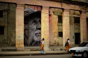 Part 2 of our Habana adventures was a more gentle version of our arrival, kind of a way to better get to know the luster of life in Cuba.  We wanted to dig deeper, to feel the heartbeat of the city, and to try and to get a grip on what keeps the clock ticking.  Naturally, this was best done by getting lost in it’s maze of neighborhoods outside of the mainstream restaurant strips, away from Obispo, beyond Vedado, and into the unknown.  This mission was only due to the beautifully executed collaboration of two artists, J.R and Jose Parla (http://www.ibtimes.com/articles/339625/20120510/havana-biennial-wrinkles-city-jr-jose-parla.htm), for the bienal art festival that Cuba hosts every 2 years.  For Cuban artists this is the chance to get some international recognition while the spotlight is turned on, and is an opportunity to stretch out of the unknown and into a whole new league.  JR shot portraits of elderly Cuban’s and wheat-pasted larger than life sized black and white images onto the sides of buildings within the neighborhoods they reside in.  His accomplice used abstract brushstrokes to enhance the captured faces that already spoke louder than words could ever capture.  A newspaper information guide to the bienal listed all the street corners, kind of like a legend of sorts, for a real life treasure hunt to find these portraitures scattered all over different parts of La Habana.   A large majority of these pictures were pasted in neighborhoods that travelers would never find themselves in, which I think was part of the theme of this collaboration.  With “esquinas” marked off on our map and our eyes finely tuned in on finding these gigantic “Wrinkles of the City”,  we sought out on a 6 mile journey through the twisty, time-warped puzzle of the city.  The unique part of this mission was getting to know these old, hidden neighborhoods where kids were playing baseball in the streets, men were welding metal bicycle frames, cars were being repaired, and outdoor boxing gymnasiums popped out of nowhere before our constantly scanning retinas. By following this invisible, interactive path we felt like we were part of an exploration, like no tourist before us could have possibly found themselves here wandering these same streets.   In total we found about a dozen of the portraits (I think there were about 25 listed, but some seemed to have disappeared) on our photogenic treasure hunt. We eventually ended up back at the Coppeleria for another round of ice cream goodness.  I’ll never forget the image of the skinny older gentleman next to us waiting contently with a gigantic 1lb piece of layered cake on the table in front of him.  He looked like he could have been one of the portraits we had been seeking out, a wrinkled man with a whole lifetime behind him of work, Cuban living, and social extremism.  We imagined what could possibly be stopping him from digging into this massive sweet treat while our order was being processed.   The answer to our question came moments later when the server brought three “tres gracias” next to his cake, totally 9 scoops of ice cream.  He began mashing the ice cream into the cake and it all quickly disappeared.  This time I ordered 3 “tres gracias” for myself as well.  When in Habana…
