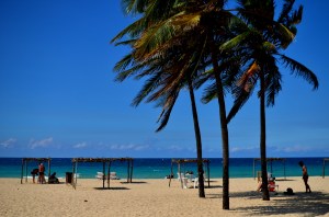 To beat the now tumultuous heat we sought out Playa Este, just outside of Habana for some Caribbean beach relaxation.  The waters were crystal clear and aqua blue while the sun was burning bright in the clear skies.  Cuba’s beaches are full of colorful souls playing music under thatched roofs, watching the waves roll in, and enjoying the freedoms of the beautiful surroundings that are available for their enjoyment.  They looked like postcard beaches, endless stretches of white sand and gentle, shallow waves rolling repeatedly.  I listened in on two Cubans wasting away the afternoon beneath a thatched roof umbrella learning to play a song together.  They were bickering over what chords came next, where the next verse was supposed to start, and when to sing.  When the song came together it fit the soundtrack perfectly to the day that was happening around them on the shores of the beach.  Bueno.