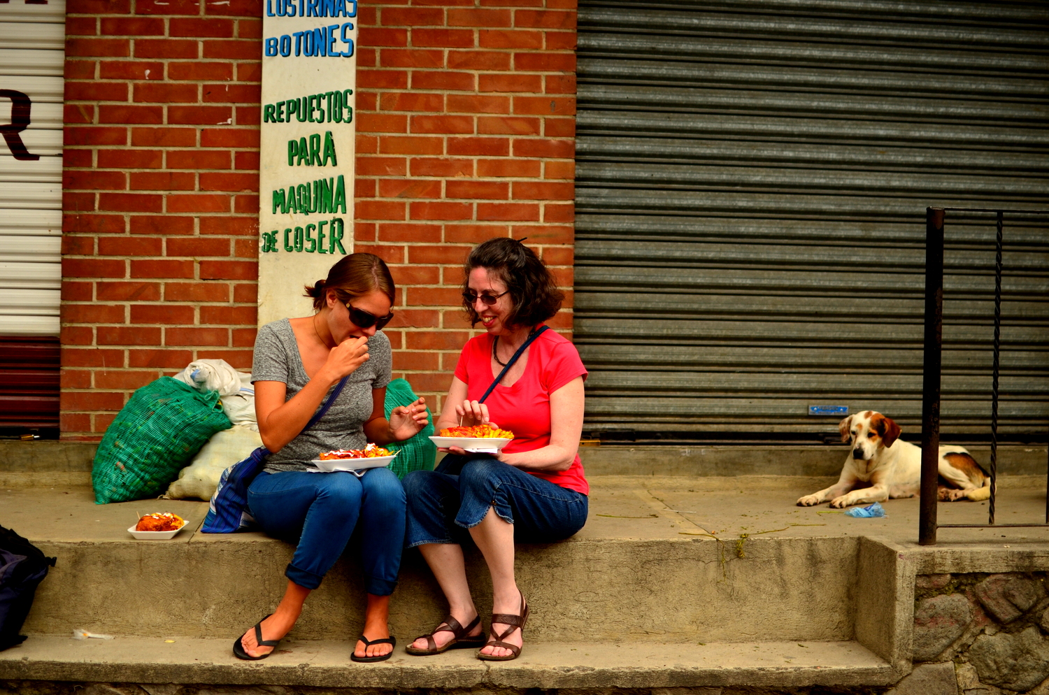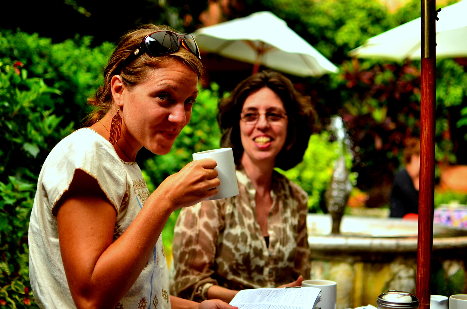 Caryn loves woven fabrics so it only made sense that she needed to visit us in Guatemala. Antigua was a goldmine for her. We would often find ourselves walking down the street and turn around to see that Caryn was missing. All the beautiful, colorful, and artistic crafts would catch her eye and she would get vacuumed through the doors. I watched this phenomenon happen several times. We explored artisan markets, stores, shops, and Mayan women roaming the streets selling everything from fruit to hammocks, setting ourselves a few steps back to watch Elissa’s mom interact with the experience. There was a lot of explaining that we didn’t want to buy crafts. When you look at something with any sort of interest here they see a very high potential for a sale. When they see a wide-eyed craft-loving American woman completely fall in love with their goods, they react. Fun was had, and smiles were dolled out from the general gentle Guatemalan demeanor. A glamorous amount of food was also had, because that’s what mothers like to do. Antigua offered a wide array of cuisine to dine on and we tended to gravitate towards the locally owned eateries. Fresh, delicious coffee was also surprisingly easy to procure.