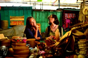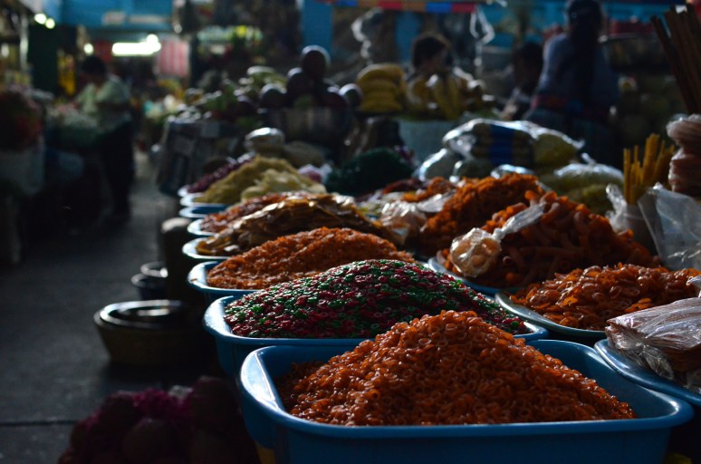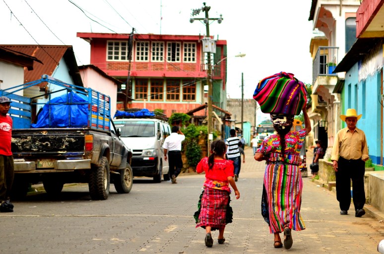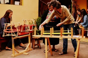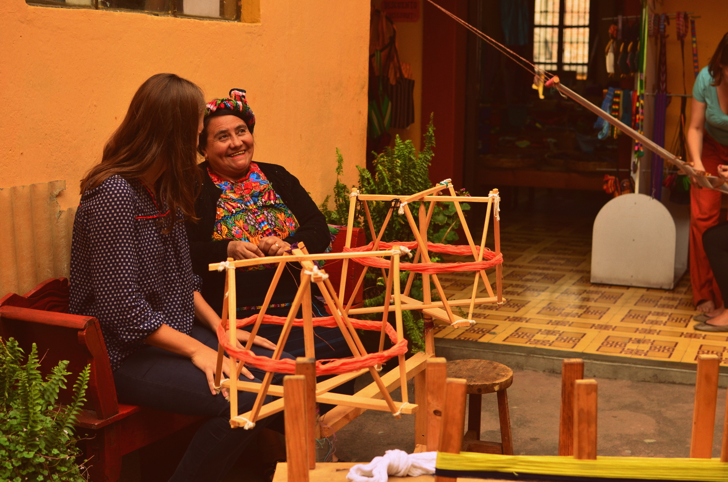 An important stop in Xela was Trama Textiles, a cooperative set up for displaced or abused indigenous women to make and sell their goods at prices they all agree upon. A little research showed us that this cooperativa was part of a network of 17 groups of weavers aiming to give these women a safe place to work and demonstrate their weaving skills. We were the only visitors on that day so there didn’t seem to be any weaving classes offered. After browsing and buying a few gifts we were asked by the in-house volunteer if we would take part in a backstrap and general weaving demonstration in order to provide pictures and video for their website. Caryn found herself transported to heaven while she was given first hand demonstration on Mayan weaving techniques. I snapped away while the girls learned the mystery behind the beautiful textiles created daily by Mayan women. Later that day we took a trip out of the centro and into the fast-paced bustling mercado scene to shock Caryn a little bit. We passed by section after section of freshly prepared fruits, vegetables, live poultry, ceramics, garments, and men making furniture. We disappeared into the large warehouse-like buildings with mom in tow. Little ceramic pots were bought as souvenirs as 8Q liquados were bought next to cobblers repairing shoes. Later that night we found an almost unimaginably delicious Indian restaurant before retiring to our family run hotel.