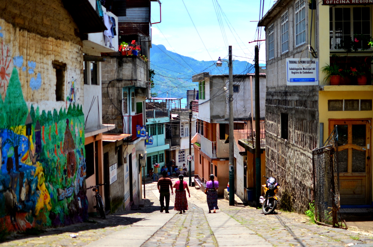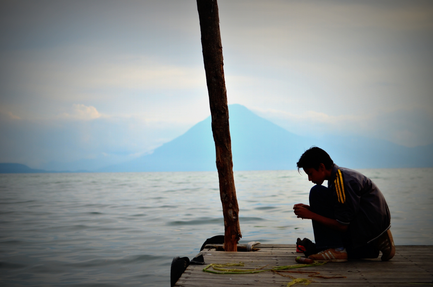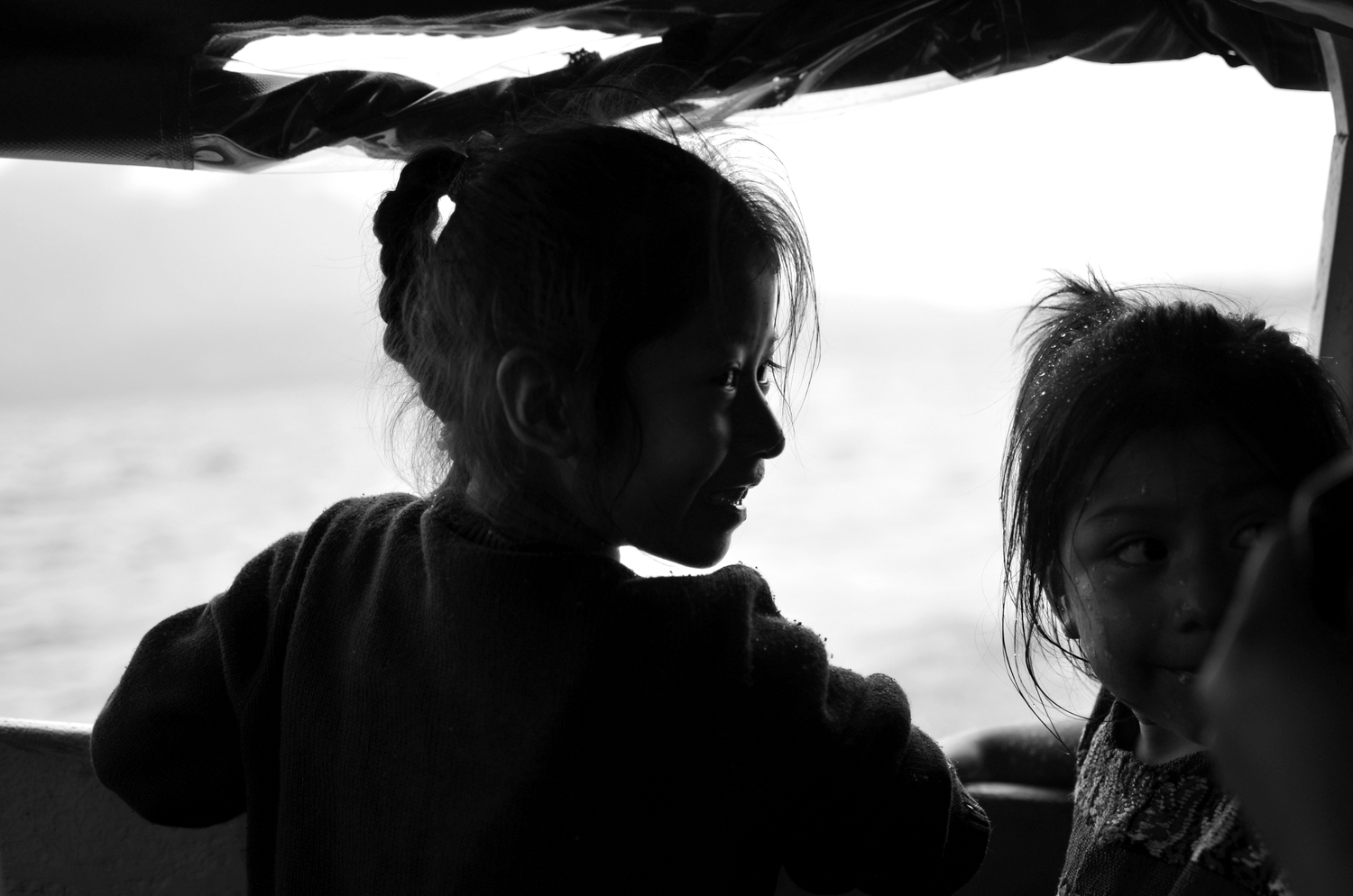 When we finally arrived in San Pedro it was raining harder than I’ve ever seen it rain before. We were dropped off at the center of town, no where near any hotel or hostel. Torrents of water were charging past our feet, making solid footing quite difficult to find. By the time we found our hippy hostel (7$ for 3 people per night) we were absolutely soaked through. The rain left eventually and everything took on that fresh, new mountain air scent that only a passing storm can leave. The next few days were spent showing Caryn everything that this Mayan world could possibly offer to an outsider. We explored the tuk-tuk filled streets of San Pedro to show Caryn everyday life up in the market. San Juan, San Pedro’s neighbor, was having it’s annual fair that weekend so we naturally wound up there. This small village had set up a proper fair, complete with carnival rides, dozens of food stalls, cannon-like blasts every 5 minutes, and Mayan families celebrating their culture. We followed our hearts through the streets and our ears to the music. A large crowd surrounded several dozen men, women, and children donning traditional celebratory costumes and masks dancing to live music. A slow, beautiful boat ride to Panajachel gave Caryn the experience of the lake that words can’t describe. We played with a little Mayan family on the boat and the girls were more than enthralled to get their pictures taken and to take ours with their fathers cell phone. An obligatory shopping excursion followed in Panajachel, which has some of the best prices and biggest selection of Guatemalan good’s to bring home gifts for loved ones.