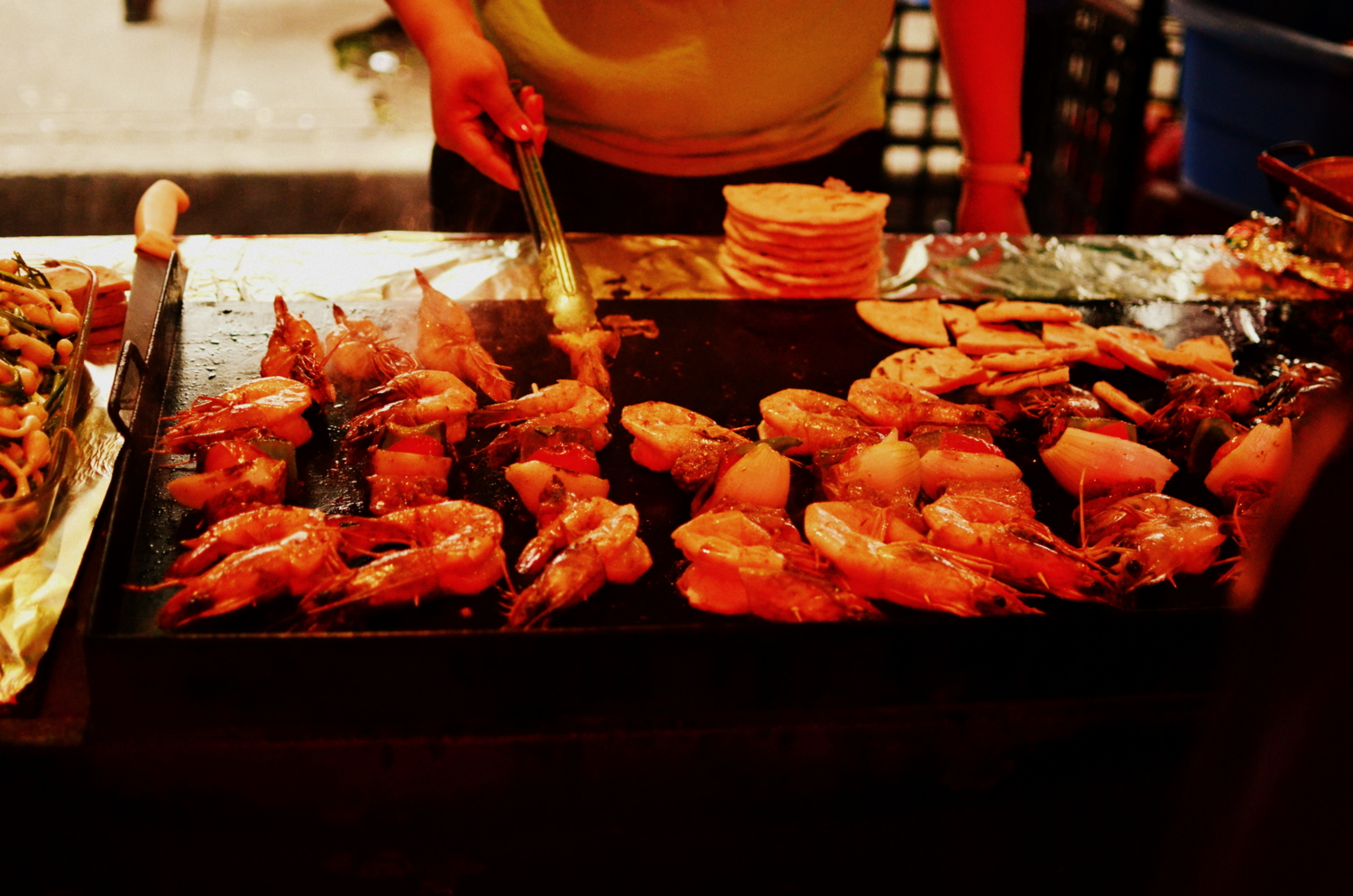 Juayua’s main attraction is to experience the food fair it hosts every weekend. Nestled up in the mountains of El Salvador along the Ruta de los Flores, Juayua clutched it’s small village charm and a slow and easy Central American pace, of course. Latin American towns, especially small ones, have to have some sort of unique quality about them to attract people there since there are so many others in this part of the world. A food festival sounded like the most enticing trait a town could possibly have after a long travel day. We hunted around for hostels through empty food and fair stalls already set up for the weekend’s festivities, wandered around the piecemealed mercado below plastic tarps and stall ceilings before finding a cheapish hotel. By now it was 9 o’clock and we hadn’t really eaten anything since breakfast after being shuffled bus to bus since the morning. We encountered our first of very, very many papusa purveyors and made full bellies in a family run restaurant.