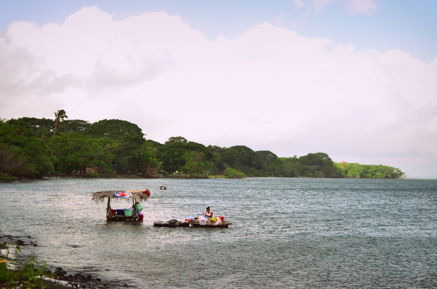 Any traveler who has ever set foot on the strikingly surreal island of Ometepe knows all to well the trials and tribulations of the journey to get there.  This is especially true if your goal was an early arrival.  Our passage to Ometepe started at approximately 5:45Am in San Juan del Sur. Catching the first bus back to the hub town of Rivas had us get to the ferry at the absolute last minute it was boarding. Our vessel, FERRY EL CHE GUEVARA, was jammed packed to standing room only. The metallic human transport vessel stepped on the gas the minute we set our bags down, straight into the full strength of a powerful northwesterly wind. The ship almost felt like it was testing the limits of it’s buoyancy several times, and quickly began turning smiles, thrills, and laughter into discontent, sea sickness, and eventual vomiting. It seemed like every kid around us began throwing up, and most had brought little towels specifically for this situation. The morning rain storm didn’t help matters. The thunderous applause from the ominous clouds that shrouded the cone tops of both volcanoes swirled ahead of us, hanging close to contours of each massive body that comprise the island. Then, like magic, the clouds were slowly unzipped by intensely purified rays of light. The green hills of Ometepe’s lush, rain forest covered slopes became illuminated shortly thereafter. When we reached the dock there were women waist deep in the lake washing their clothes using home made stone washing stations, which was a good sign that weather should clear up.