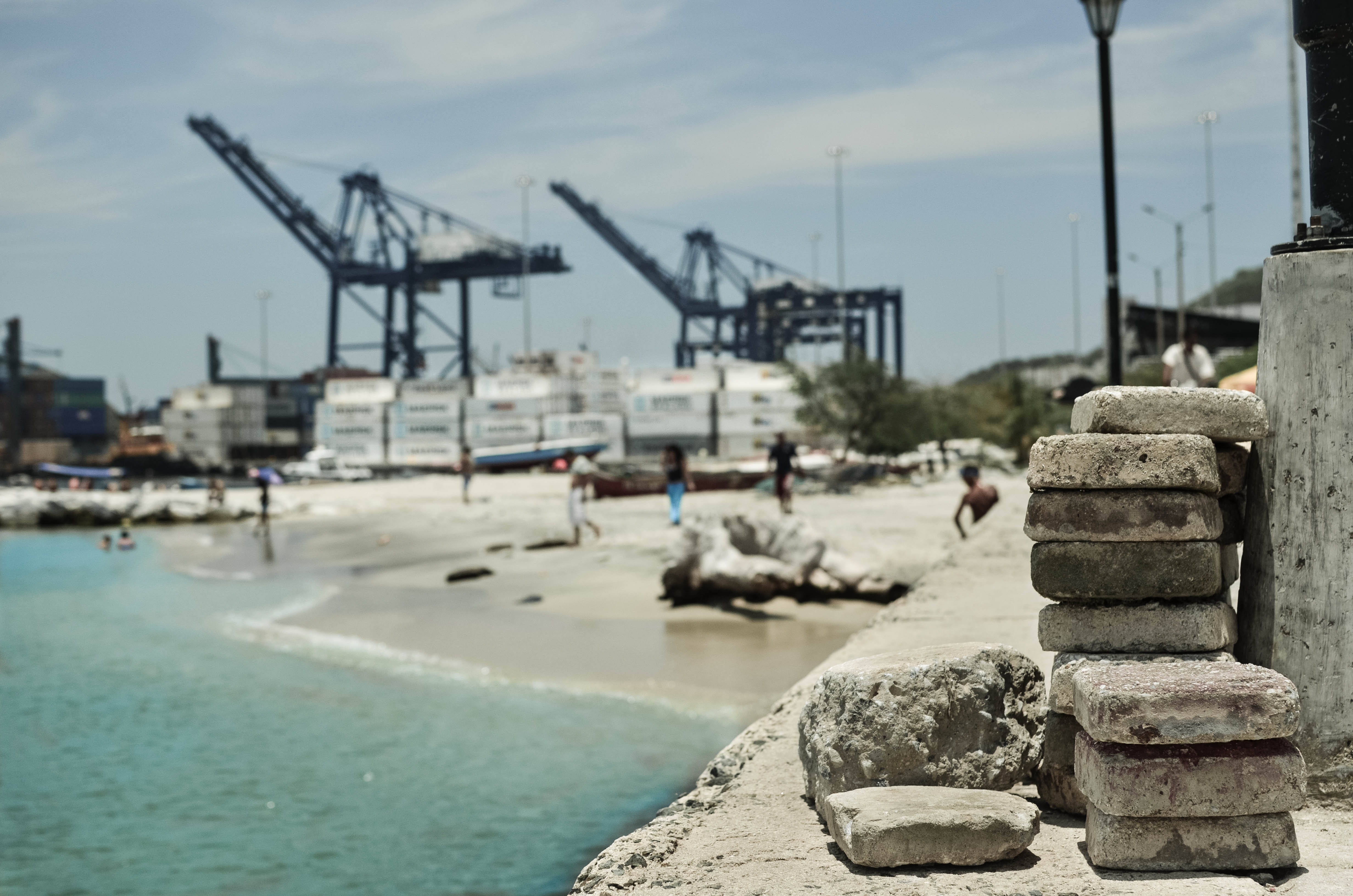 The beach was small and fairly dirty by normal standards; there was a decent amount of rubbish in the water and on the sand.  That did not stop Colombians from enjoying all that the stretch of shore had to offer.  Kids were jumping off the sea walls and into the turquoise waters, people were lounging in the hot sun, and food carts were never far away.  Large boats were anchored off one of the main docks and appeared to be rotting away in the salty sea.  I saw hammocks tied to the beams with teens snoozing away in the sweltering heat of the day.  Younger children played a game of pulling in anchored boats by the rope tied off to the docks and pretending to take them over like pirates.