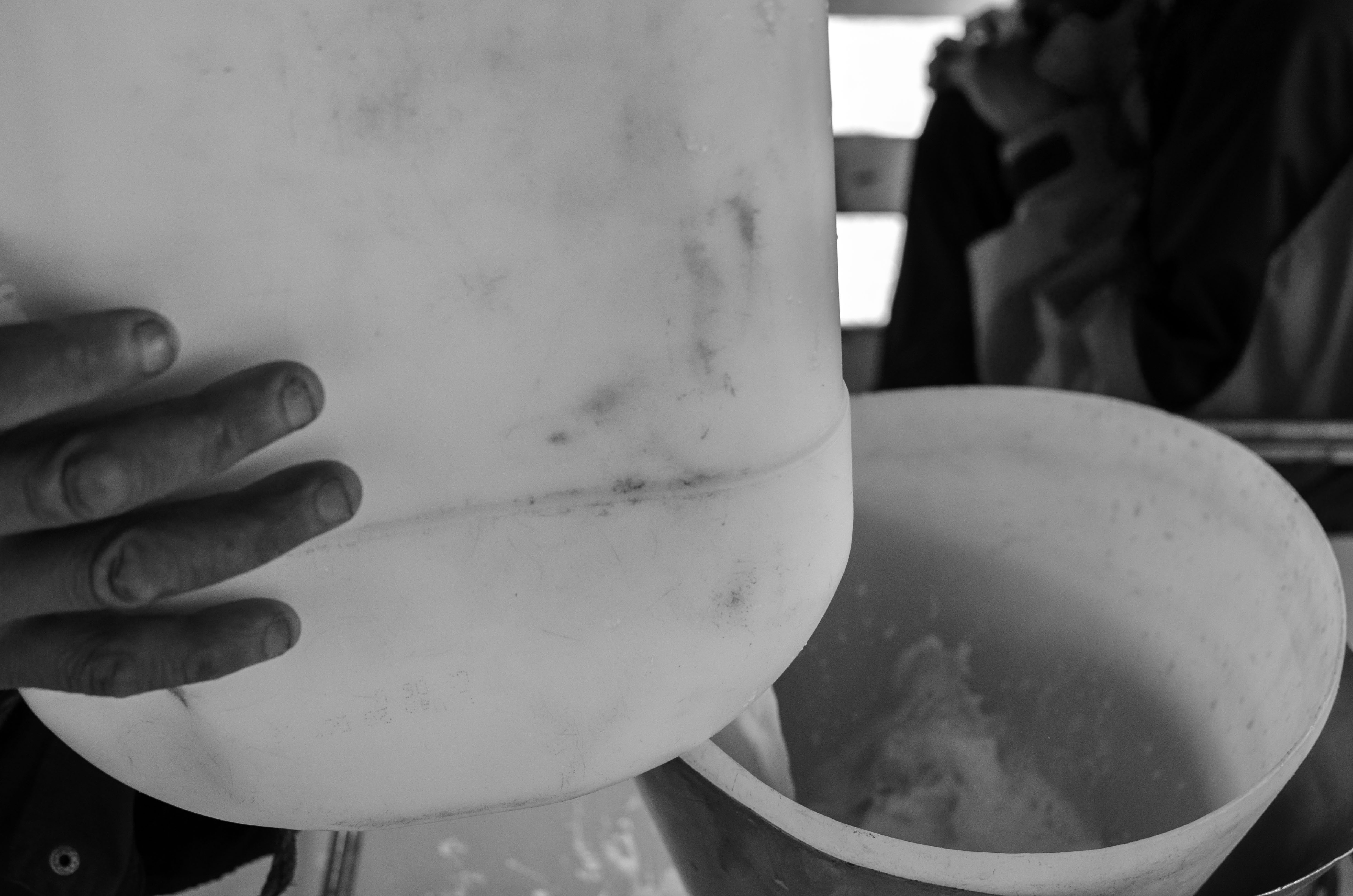 road we were using cut through the mountainside, and wound around ridges and valleys as we ascended towards the clouds. Occasionally, the truck would stop and the milk man would hop down, grab some plastic or metal containers left by the road, and empty warm milk into the large tank. Debris was filtered out with a metal panning screen that was held in place while pouring the warm, raw milk into the containers. Farmers milked their free range cows by hand and would leave their share out by the road every morning this way, and the pick up truck would keep track of who yielded what amounts in a notebook. This happened several times before we were dropped off at the road that lead to our cabin. The young man that we arranged the night’s stay with was waiting for us when we arrived.