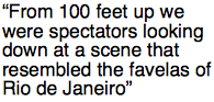 Screen shot 2013-10-13 at 6.47.14 PMWe gave Medellin a get out of jail free card and made tracks for the Biblioteca Espana the following morning.  This modern library sits on the slopes of the mountain in the neighborhood of Santo Domingo Savio and was built as part of an effort to connect the poorer slums of Medellin with the inner workings of the city.  As a public works project, it is a grandiose library offering the tools for success in a neighborhood miles from town that would otherwise just be for people living there.  From 100 feet up we were spectators looking down at a scene that resembled the favelas of Rio de Janeiro.  These streets wouldn’t be a nice walk for someone who didn’t live there, and there was a heightened sense of security gazing at the life below from the unreachable vantage point of our glass and metal pod.  By the time we had reached the top, we had somehow lost interest in seeing the library.  We realized that as pretty as a modern library can be, we weren’t going to take out any books or do anything but look around so we took off. We decided to go back and see the botanical gardens instead.