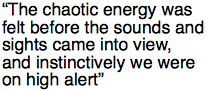 Screen shot 2013-10-13 at 6.47.07 PMWith our hearts pounding, we listened to the loud noises just outside our doughy safe house grow more and more chaotic.  The owner peered his head outside of the doorway while everyone inside the shop just sat there waiting for something to happen.  After a few minutes, the noises quieted down, and we decided it was time to make our escape for the subway.  We stepped out into the streets, seeing Colombians scurrying around the deserted streets.  I remember hearing a loud explosion very close before we saw something that is now seared in the “holy shit” part of my brain.  After the small “bomb” went off we looked left down a street just in time to witness a huge black military vehicle turn the corner.  It still to this day feels like a scene from a film, like something I was safely observing from behind a screen and not in person.  A massive, 10 wheeled machine appeared from the golden, dusty afternoon light with a mounted turret aimed directly our way with only about 100 feet of distance between it and our shoes.  It was at that moment that running felt both socially acceptable and necessary.  Without looking back, we sprinted for the subway entrance.  We made it inside just before police threw down the gates once again, locking out the general public one more time.  We scurried up the stairs and watched the scene from the safety of the subway platform a good 50 feet off the ground.  Everyone was staring down at the scene below wondering what was going on.  When the train came we piled in and sat down, embraced by the silence of sealed doors.  At the next stop the doors opened and let in the orchestra of urban chaos, as if opening a sound proof window in front of a riot.  Bottles and glass smashing, sirens sounding off, screaming, and the sound of objects thrown into metal doors echoed in the car for 10 seconds.  The doors then shut, and off we were back towards El Poblado.