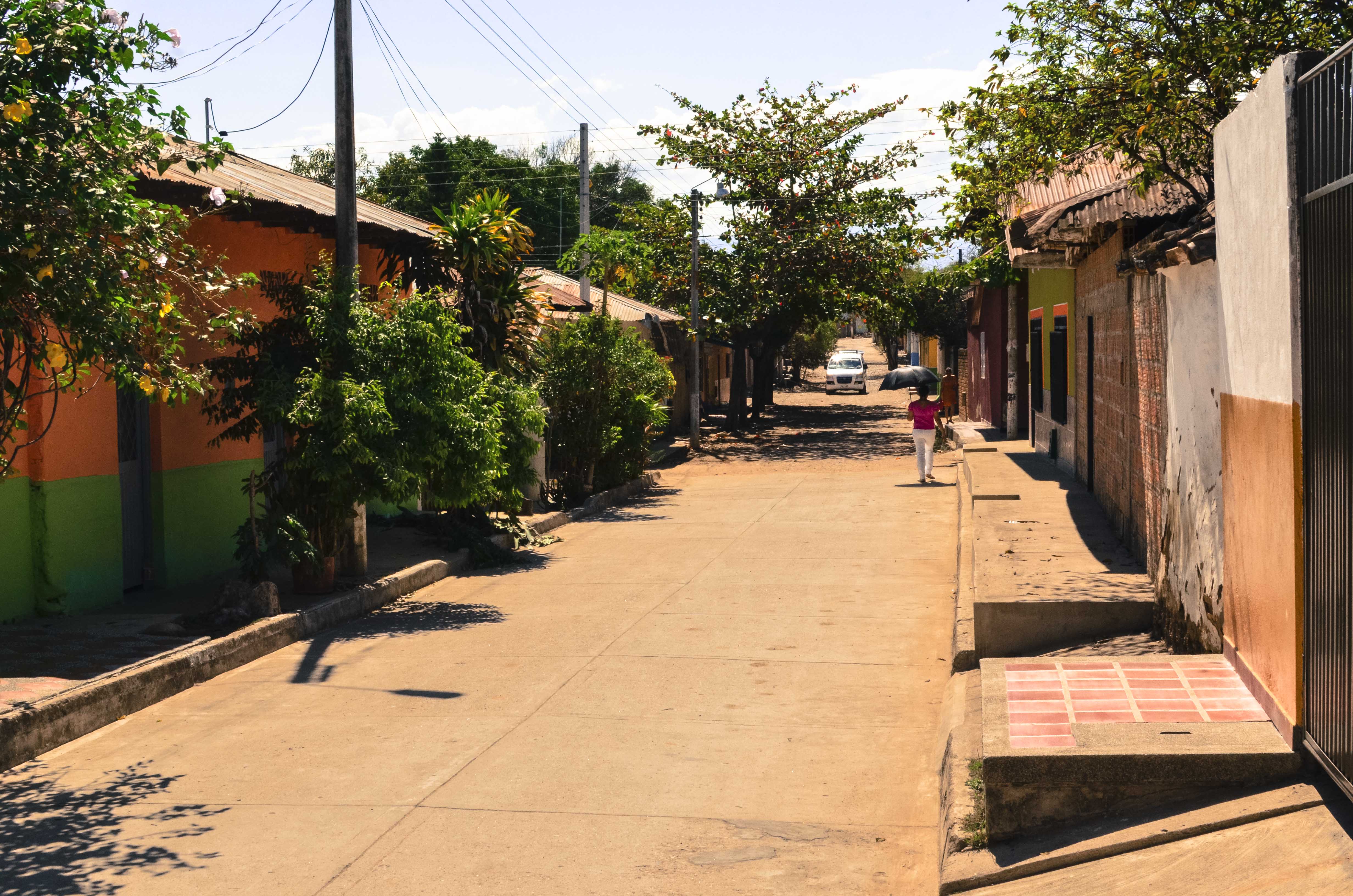 We had been hopping on and off small van buses from Salento and made the mistake of asking our driver for his opinion on where we should get off to grab a connection to Tatacoa.  Our route had us heading past Tatacoa on the main road and then getting off at a hub in a small village to catch a collectivo back to the Tatacoa.  Our driver stated we could get off  at a small town before our intended destination and shave about an hour off the trip.  At that point the sun was sinking slowly in the dry desert sky, and we decided to go with the drivers advice to save a little time.  We watched the van pull away and disappear into the distance while we started walking with our bags into a tiny little town literally in the middle of nowhere.  Tiendas appeared here and there,  people gave us passing smiles partnered with looks of curiosity, certainly because of our presence.  In the middle of the town there was a loud demonstration, with what looked like the entire village in attendance.  We silently scanned the scene, looking specifically for the collectivo van that our bus driver led us to believe would be there.  After asking a few questions to the right people we found out that collectivo route doesn’t exist because a bridge collapsed during a recent flood.  So there we were again; stuck in a tiny Colombian town with no accommodations, heavy backpacks weighing our backs down towards the cruel cobblestone streets, with our destination apparently just out of reach.  Then, like magic, a stranger appeared that was some sort of town official and said there was a solution to our problem.  According to him, there is 1 boat that leaves at sundown along the river, which was a short hike through fields on the edge of the town.  He told us that it was not safe for us to walk alone on this route with our gigantic tourist bulls eyes on each of our backs.  He mentioned there was a woman who was in town selling bread and that she always takes the boat back in the evening to Tatacoa at sundown.  We faithfully followed the man through side streets and small plazas, watching him as he greeted people he knew along the way.  Then the town ended, and nature was in front of us. We wandered along a path that cut through fields, fences, and streams complete with bridges on the brink of collapsing. After a while we arrived at a large meandering river that separates Tatacoa from the main road.  Waiting patiently by the smooth, rounded stones was an elderly Colombian man donning a cowboy hat and a toothy grin inside his little fishing boat.  Magico.  We paid him a dollar or two and waited until the lady selling bread appeared.  We set off on the river while the sunset was turning orange and red, whisked downstream by a fragile motor on a handmade wooden boat, chatting with the bread lady.  The boat pulled up to the edge of the river, and our food bag tipped over exposing a few Granadias.  Our driver asked for one as part of his payment, which we were more than happy to give.