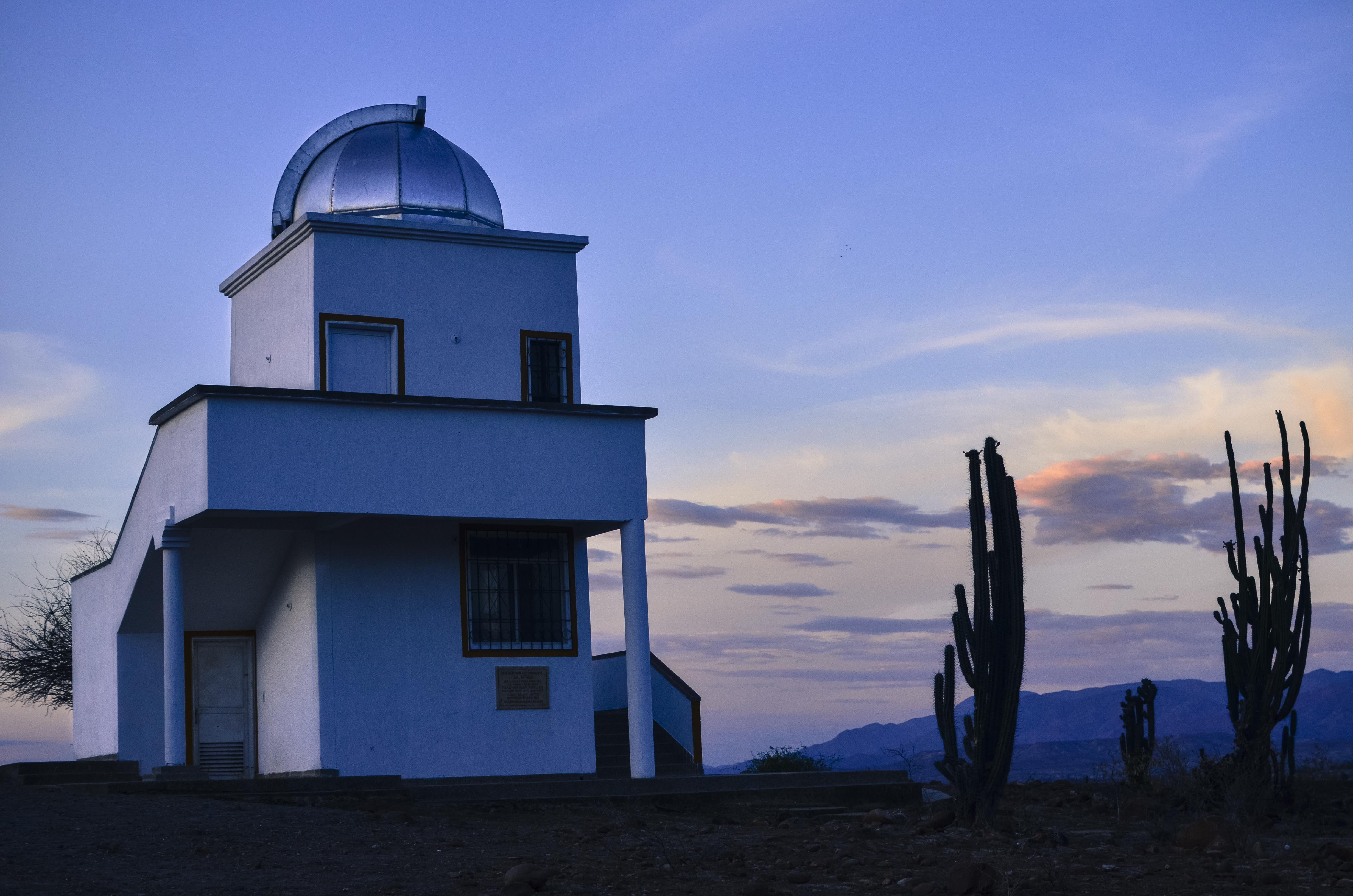 A moto pulled up to his house about the time he said it would and an older Colombian with a baseball cap shook our hands. He took Elissa off into the distance and said he’d be back for me in 15 minutes.  Like clockwork, he was back.  There was only one road going out of town into the desert, and we quickly left the little town in the dust.  Fields of cacti and very lean looking cattle hugged the road until the landscape began melting into oozing, mini canyons that the area is known for. It felt like a trick of the eye, massive mountains and valleys shrunk down to miniature portions, so small you could conquer each ridge with 2 or 3 steps upward.  The scenery kept getting better as my moto sped through the hot, relentless afternoon glaze.  He pulled up to a white washed building that behaved as the area’s visitor center run by a family who have lived in the desert their whole lives.  Beyond the visitor’s center was the observatory, whose stout white washed walls rose from the rust colored landscape.  A large metal dome that certainly housed a powerful research telescope sat proudly on top.