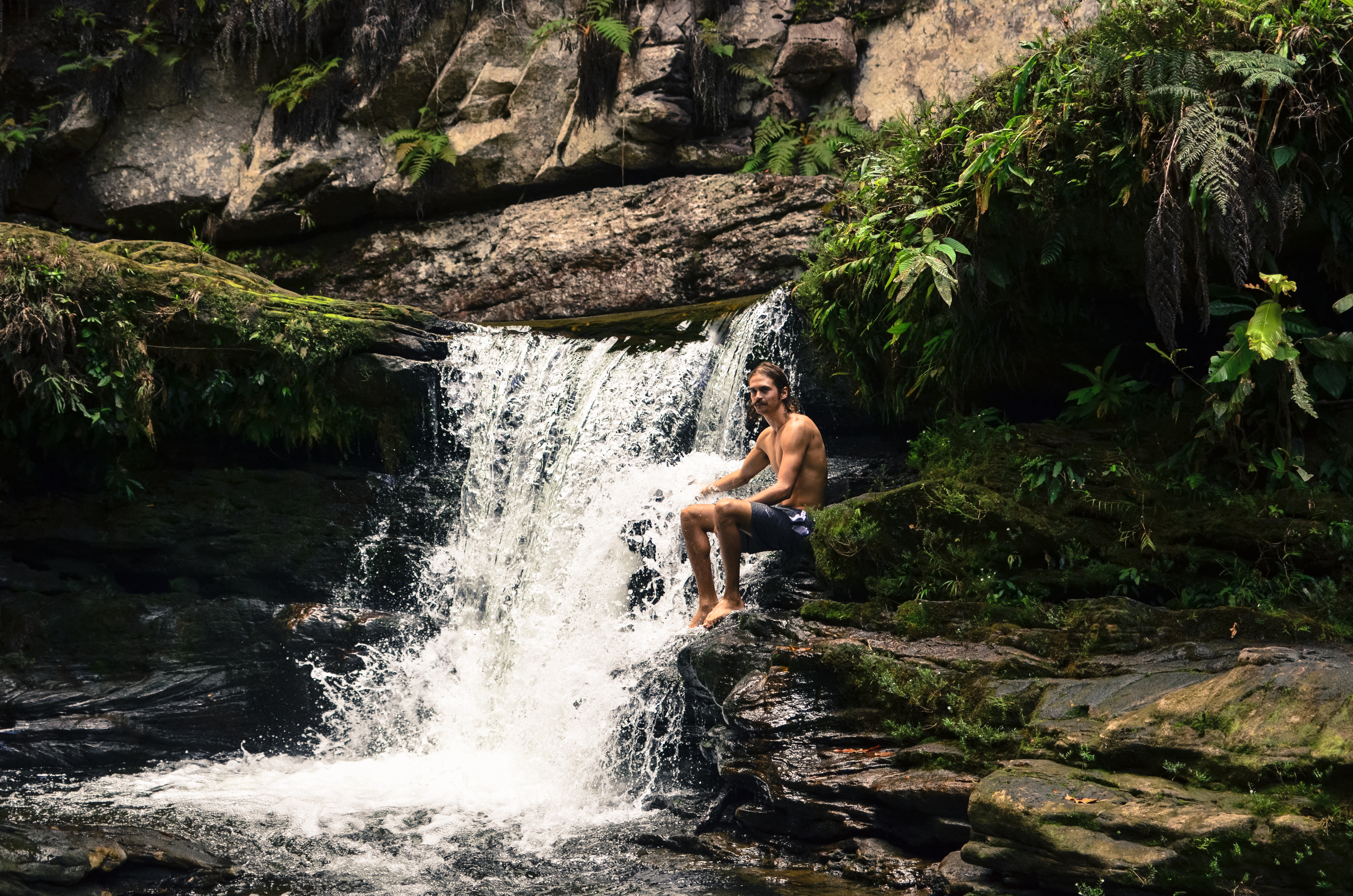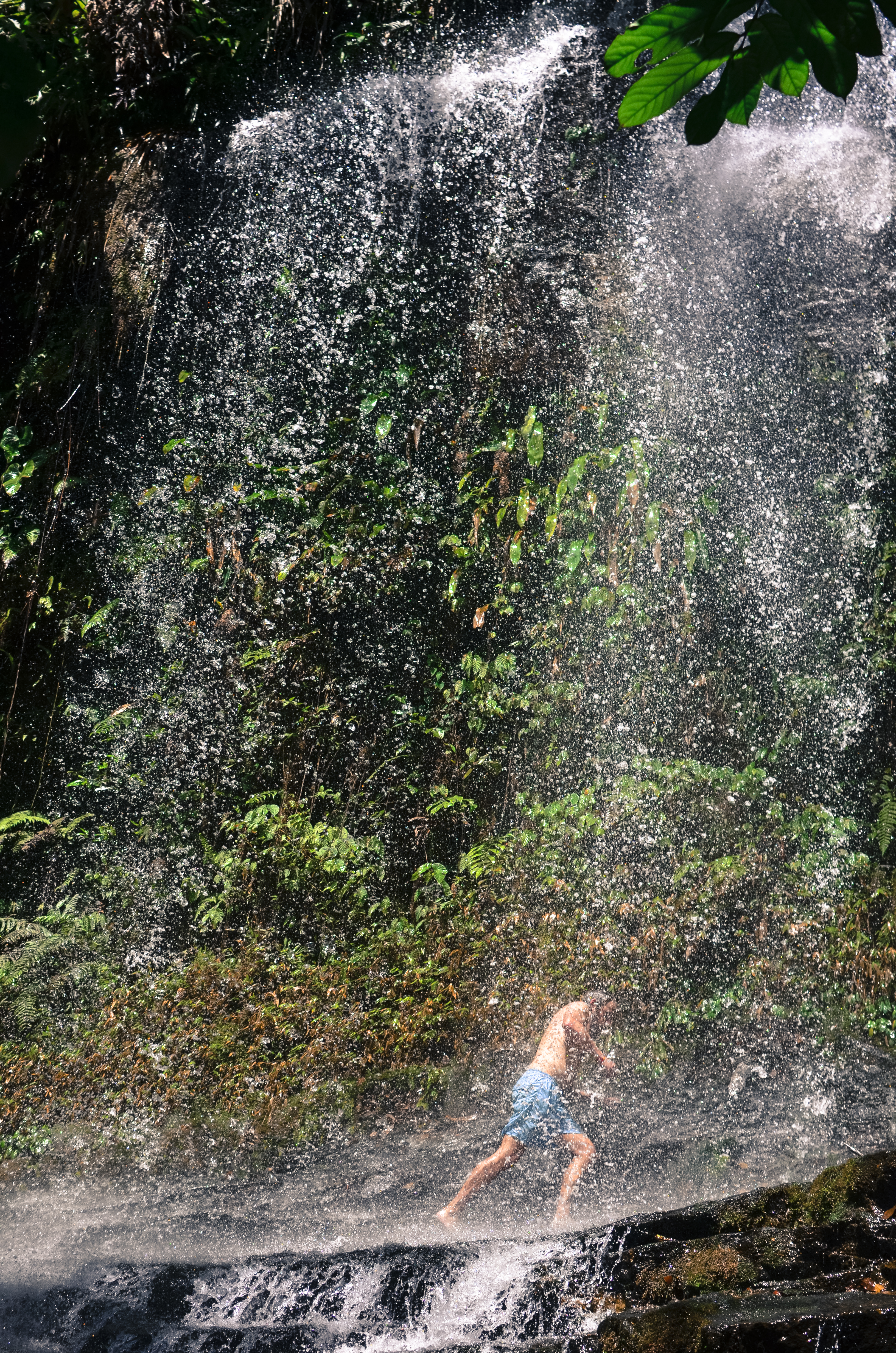 The temperature dropped about 15 degrees as we approached the large falls. There had been lots of rain the night before (one of the loudest thunderstorms I’ve heard) and the volume of water was absolutely bursting off of the cliff. The force of the water falling created a constant wind full of moisture that pulsated rhythmically like a old engine idling. The spray kept blurring my lense, and in order to grab any sort of image I had to set up, wipe the lens, and quickly snap 1 shot before repeating the entire process over again. Stefan decided to try and walk behind the falls, and disappeared shortly afterwards. I followed suit, but noticed that the closer I became to where the falls met the earth, the windier and more intense the air became. One slip would send me into a wall of water pounding down into either rock or water, I couldn’t tell. I bailed on the idea altogether, and saw Stefan appear on the other side with a large smile. We played in the water for a short while before heading back home to prepare a large vegetarian feast.