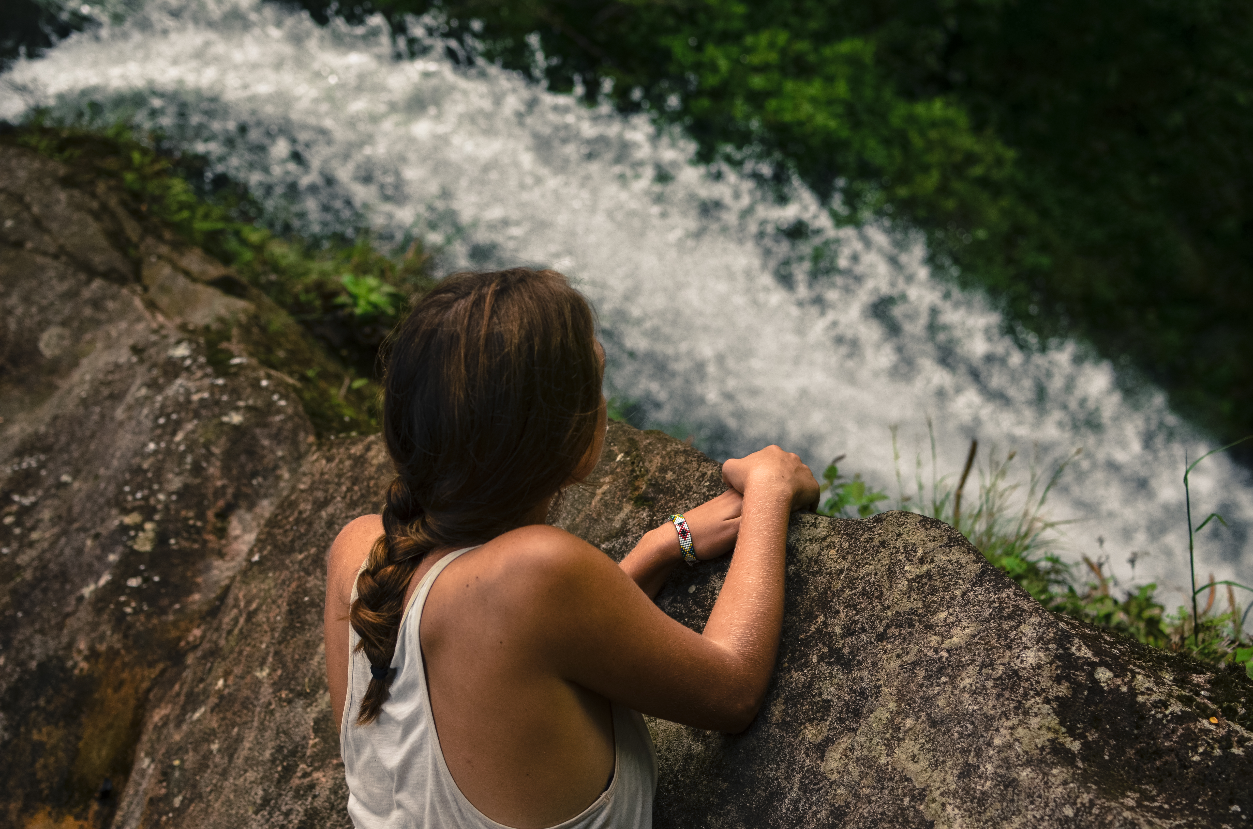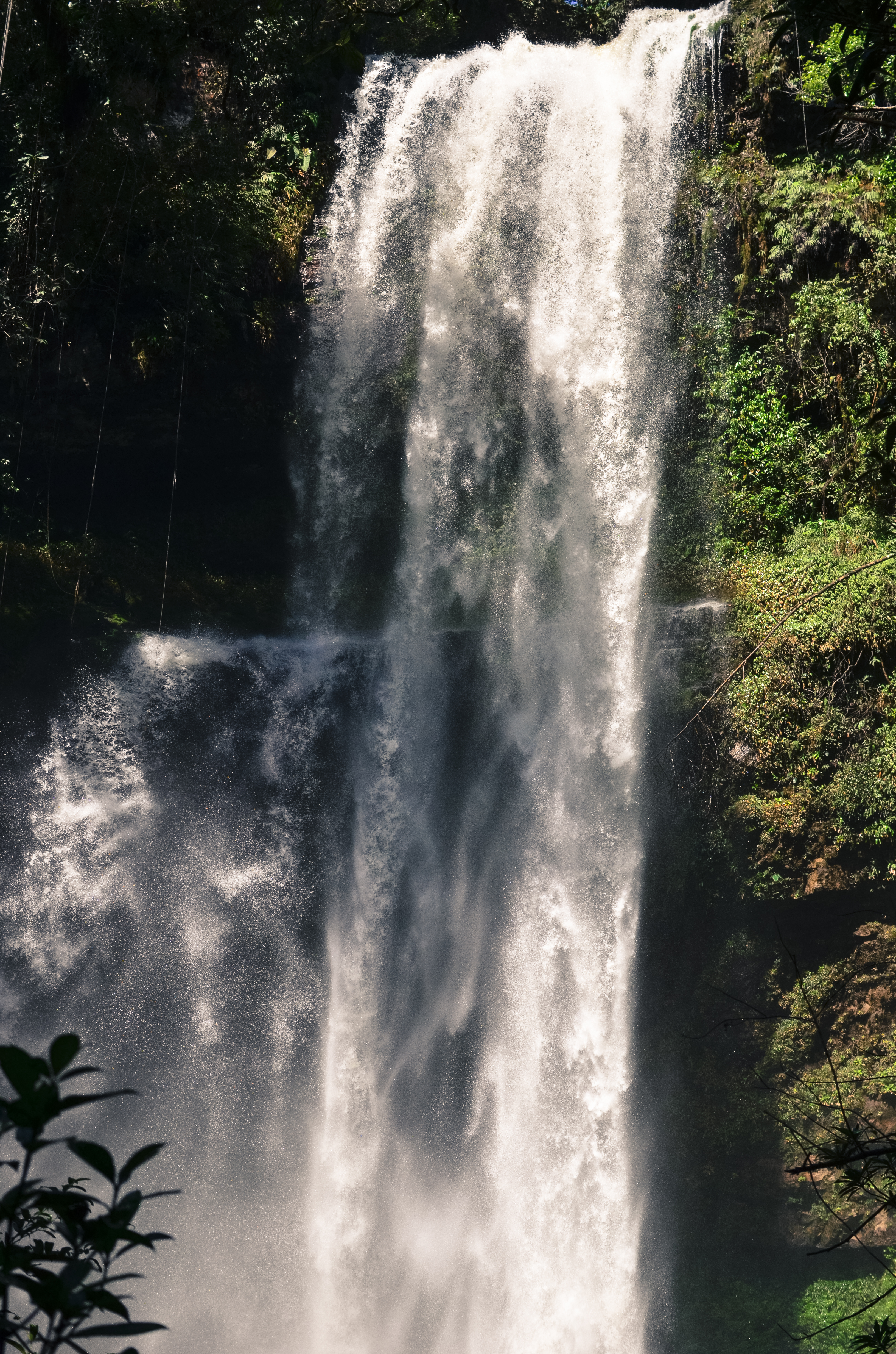The next day we did a group hike with our European friends to find some more fun waterfalls hidden in the hills of the rainforest. We talked, sweated, and trekked up through muddy, clay roads, kept company only by the occasional small farm and other hikers. Small, ramshackle homes sat proudly in the sunshine overlooking the river below. More wooden logs carefully installed into the slope helped us climb upwards into the shade created by the thick crowds of trees. The trail split off and we began our descent, hopping down from earth shaped stairs onto wet tree roots, rocks, and mud. The leaves all around us were dripping with moisture, and moss was collecting on trees in areas just out of reach from our hands. The trail was extremely steep, and at times the path became more of an effort to swing from trunks to branches, down onto roots holding the slope together. The air got more moist as we got closer to the water source. Tiny waves of mist floated through the air, illuminated by bolts of light sneaking through gaps in the forest canopy. The first waterfall almost looked fake. It was nestled into the cliff, pouring out onto 3 different levels of flat, smooth rock and splashing its way further into the jungle out of sight. We all took turns standing underneath it while water pelted our heads in full force from the drop above. The water was cold and felt amazing when contrasted against the hot, sticky air around us.