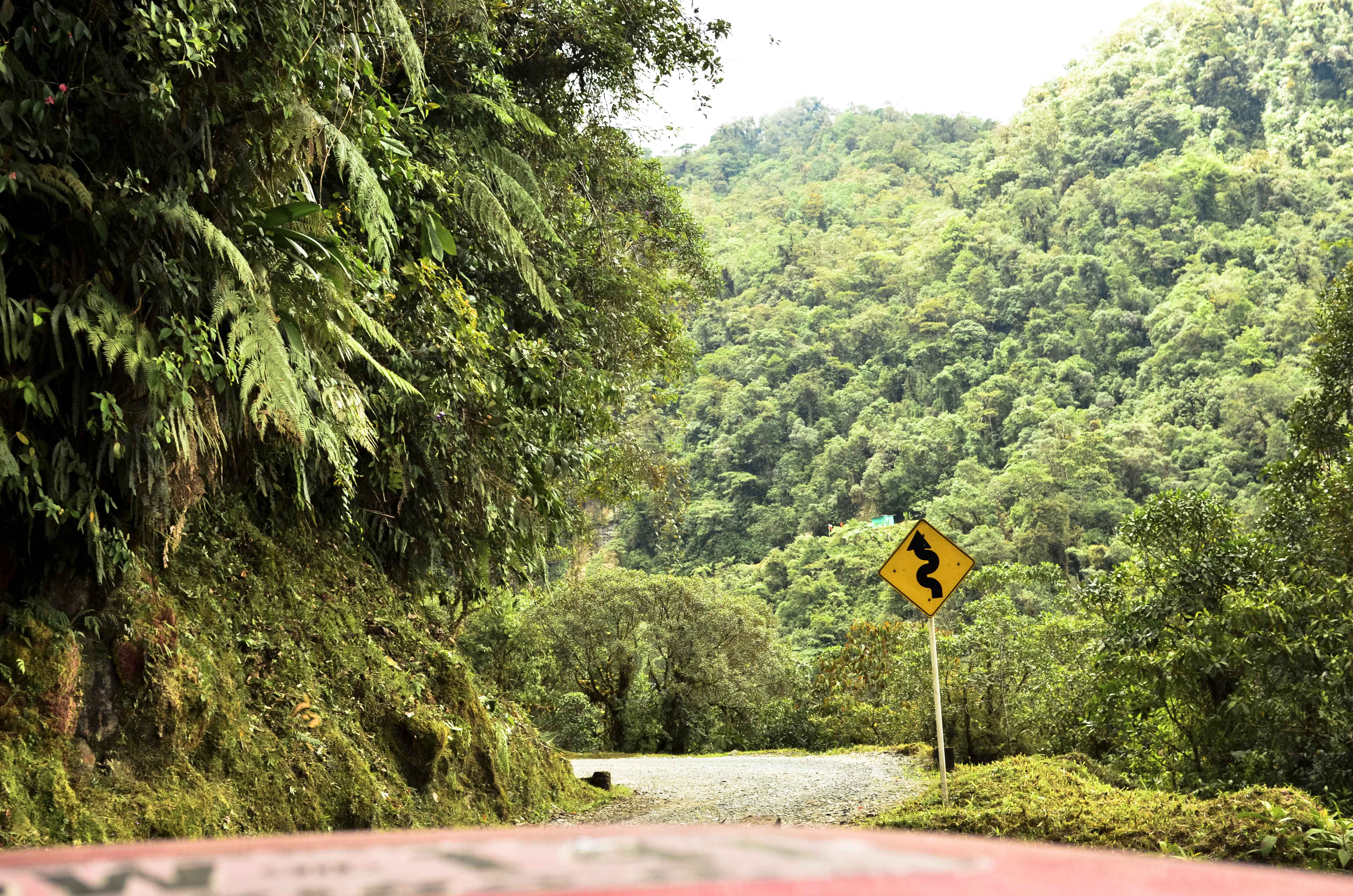 The journey started on paved roads rose gently up into the green vegetation of the lush mountain rainforest with lazy turns and beautiful views. Eventually the pavement came to an end and was replaced by gravel padding the path between us and our destination. The temperature began to drop as we climbed higher into the mountains, and road signs began to warn us that the fun parts lay ahead. True to it’s name, the road became disconcertingly narrow, with blind sided turns exposing 2 way traffic on roads built for one. Our brakes slammed on the loose gravel without warning, bringing our truck to a sliding halt every time another vehicle’s nose appeared around a tight corner. There were several instances where I was genuinely afraid that we were going to have a fender bender, or worse. The area was becoming extremely remote, with just the occasional structure or half stocked bodega on a pull off every 20 minutes or so. The fog collected in an extremely thick grey blanket, limiting our field of vision ahead of our steel chariot. The vertical bedrock walls were decorated with hundreds of makeshift memorials along this honest road. Each elaborate cross was probably made from someone’s relatives or lovers, and each shiny plaque was a sobering reminder of our own mortality. Much like other situations we’ve been in, a sense of trust that all things were going to work out was in our pickup truck that day, and we knew would get to where we needed to go.