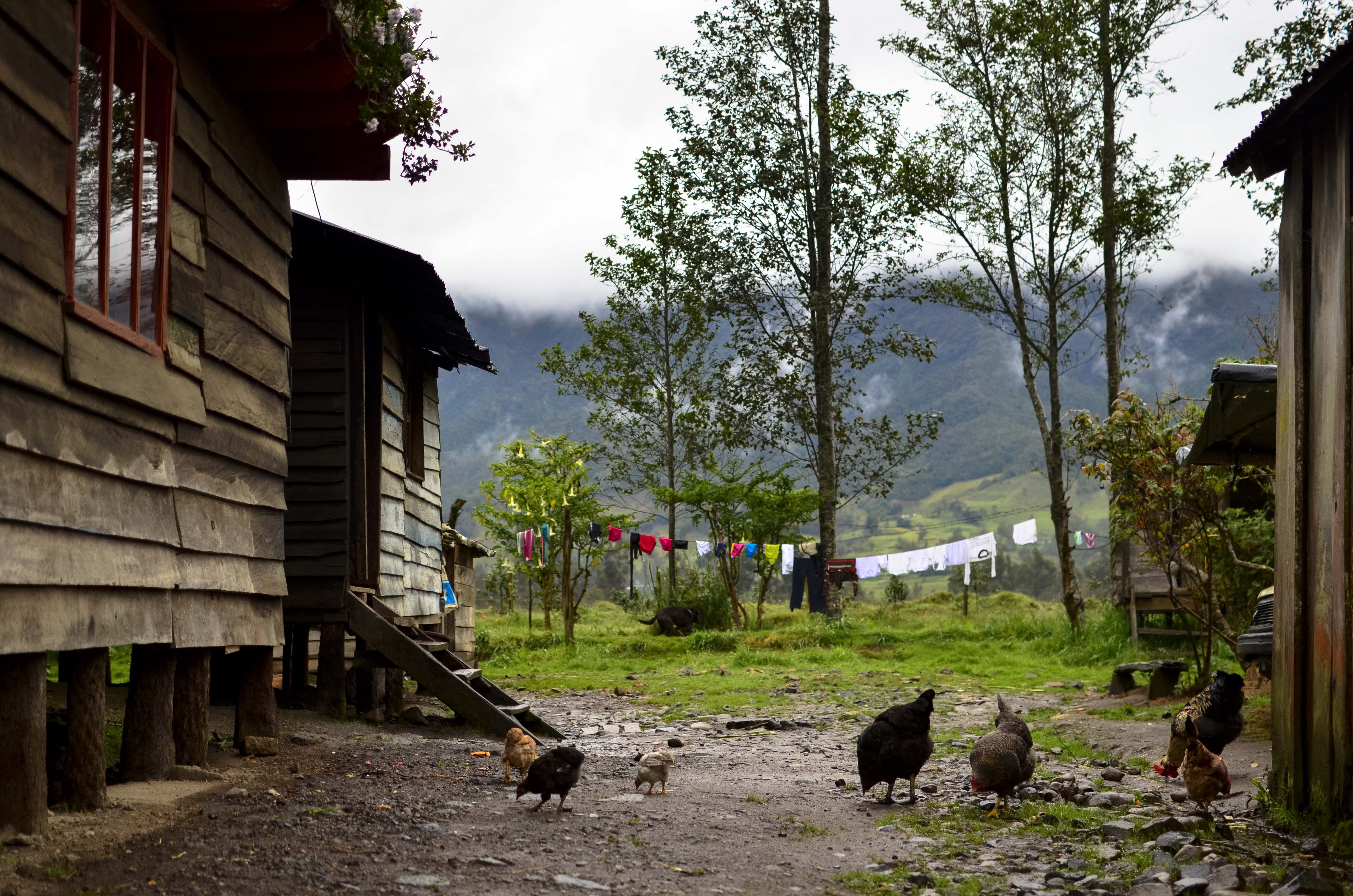 When we made it through the pass and began descending into the valleys an overwhelming sense of peace remained throughout my body and mind. There was nothing but smooth, worn pavement weaving down through the mountain valleys. The sun would break apart the clouds exposing villages tucked into the liveable areas of the green, jagged landscape. After a brief set lunch and a few more stops we arrived in La Laguna de la Cocha. We jumped off the truck, grabbed our bags, and said adios to the truck that carried us across that stretch of land. We found a family run hotel/guest house that would work for the night and immediately went to the lake to explore. Wild chickens roamed on the side of the road in this sleepy, slow village. Horse drawn hand made wooden carts were a normalcy for the locals, but for us the click-clack of the hooves and the gentle smile from the driver was a beautiful moment in time. Small bakeries and restaurants kept their doors open for passers by, and rubber boots and large wooden handled steel hoes were common work attire.