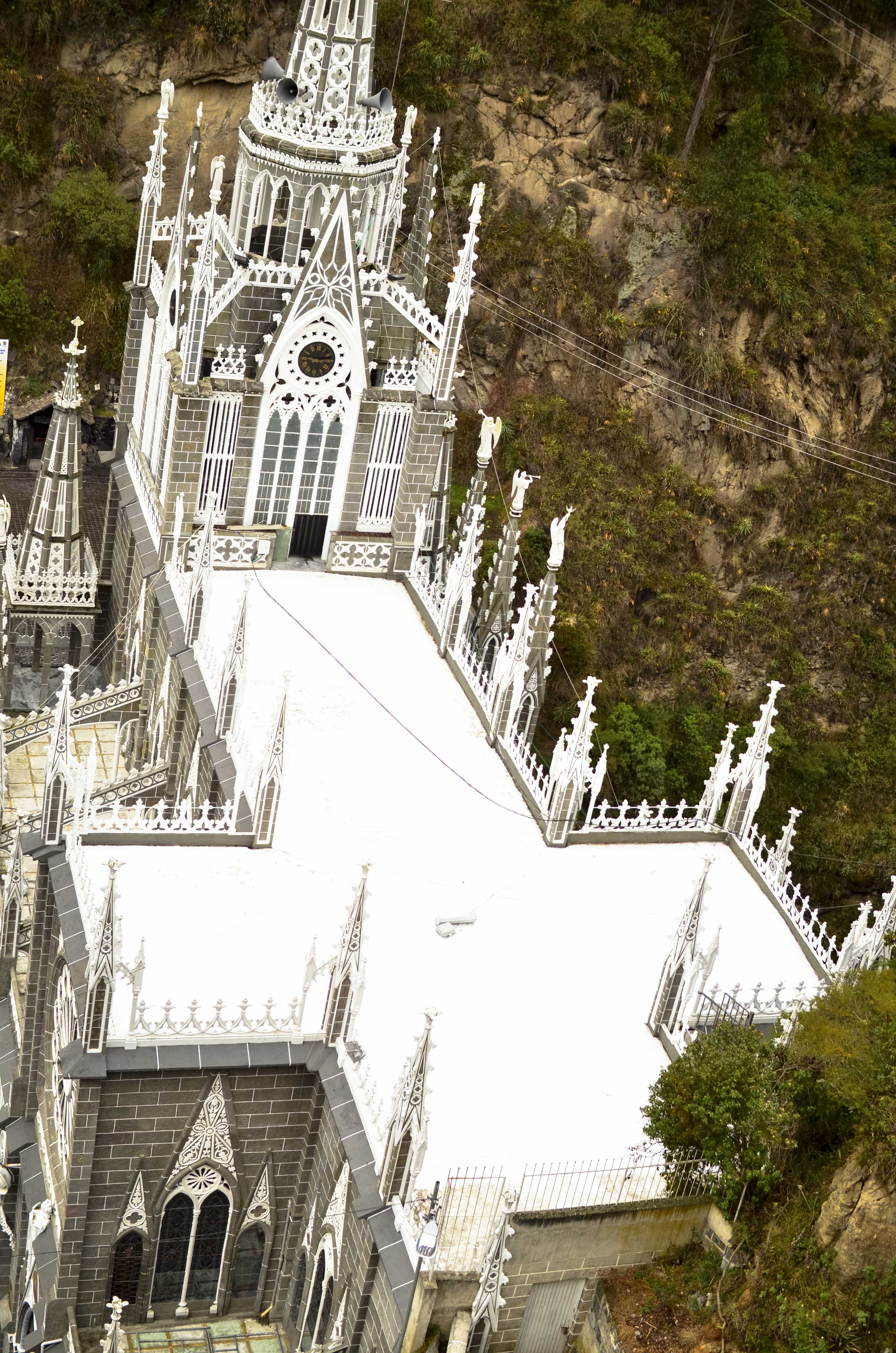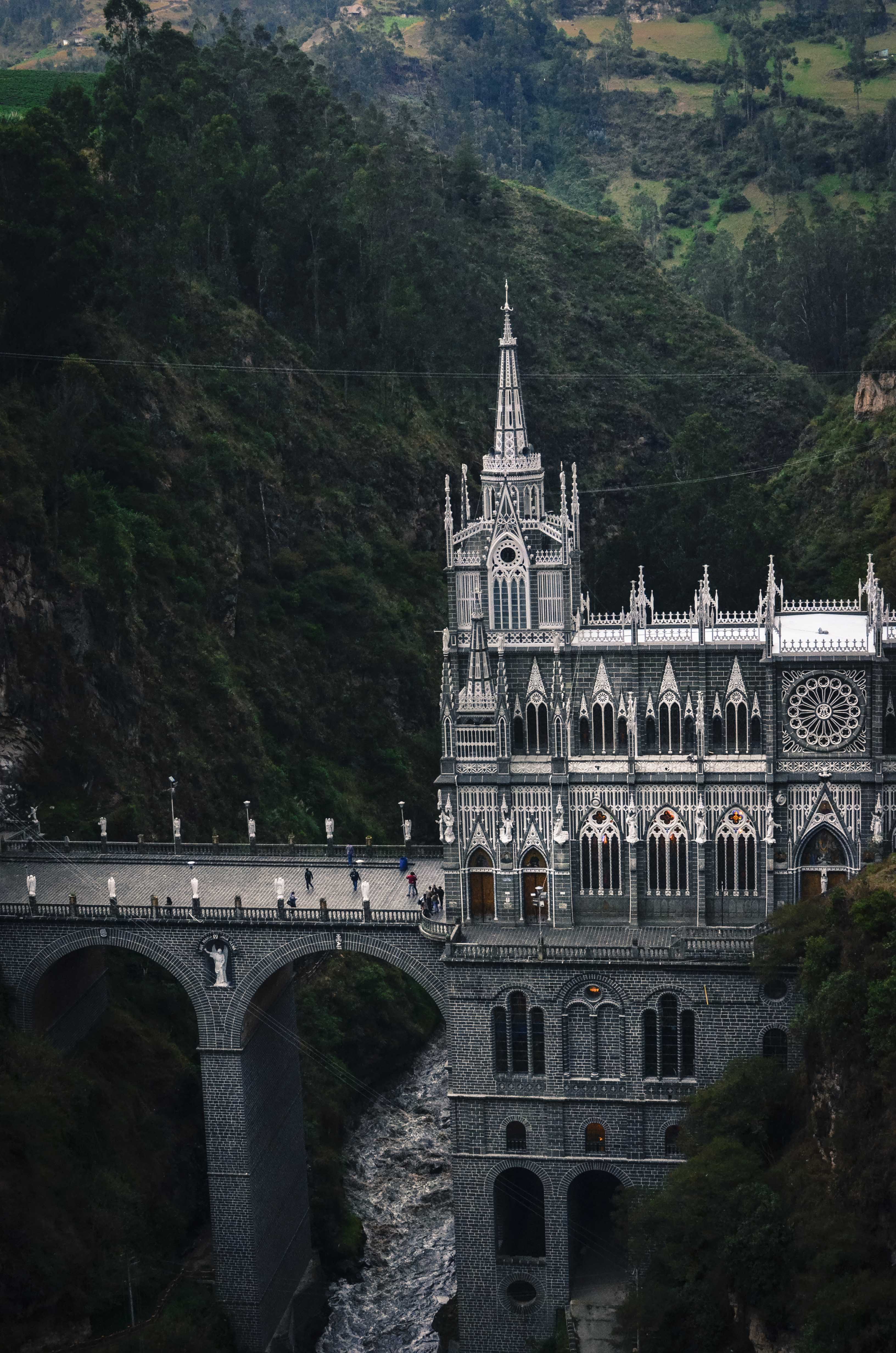 Santuario de Las Lajas is an architectural masterpiece that almost seems like it’s out of place in a random valley of Colombia, yet it’s presence is cemented in history in the green gorge that it’s massive arches span across. Legend has it that in the 1700’s, a mother named Maria and her deaf-mute daughter Rosa were seeking shelter in an epic thunderstorm in between the large flat rocks, or “Lajas”. During the storm, her daughter Rosa noticed an image on one of the rocks that appeared to be the Virgin Mary, and she spoke to her mother to point it out, which is the first recorded miracle associated with this location. Since then, churches have been built around the rock with the image, and believers long and far travel to Las Lajas to ask for a miracle of their own. Donations from fellow worshipers and families looking for miracles have been funding the multiple versions of the churches, and the current Gothic Revival style showpiece was constructed slowly between 1916-1949 in the same manner. The path leading up to and around the church was covered in plaques of miracles that families were hoping that would come true. There must have been thousands cemented into the earth with countless families asking for help or thanking for the miracles that were performed. I can only imagine the great lengths these families would travel to this site to ask for help in their trying times, making the pilgrimage from countries that were days away by bus.