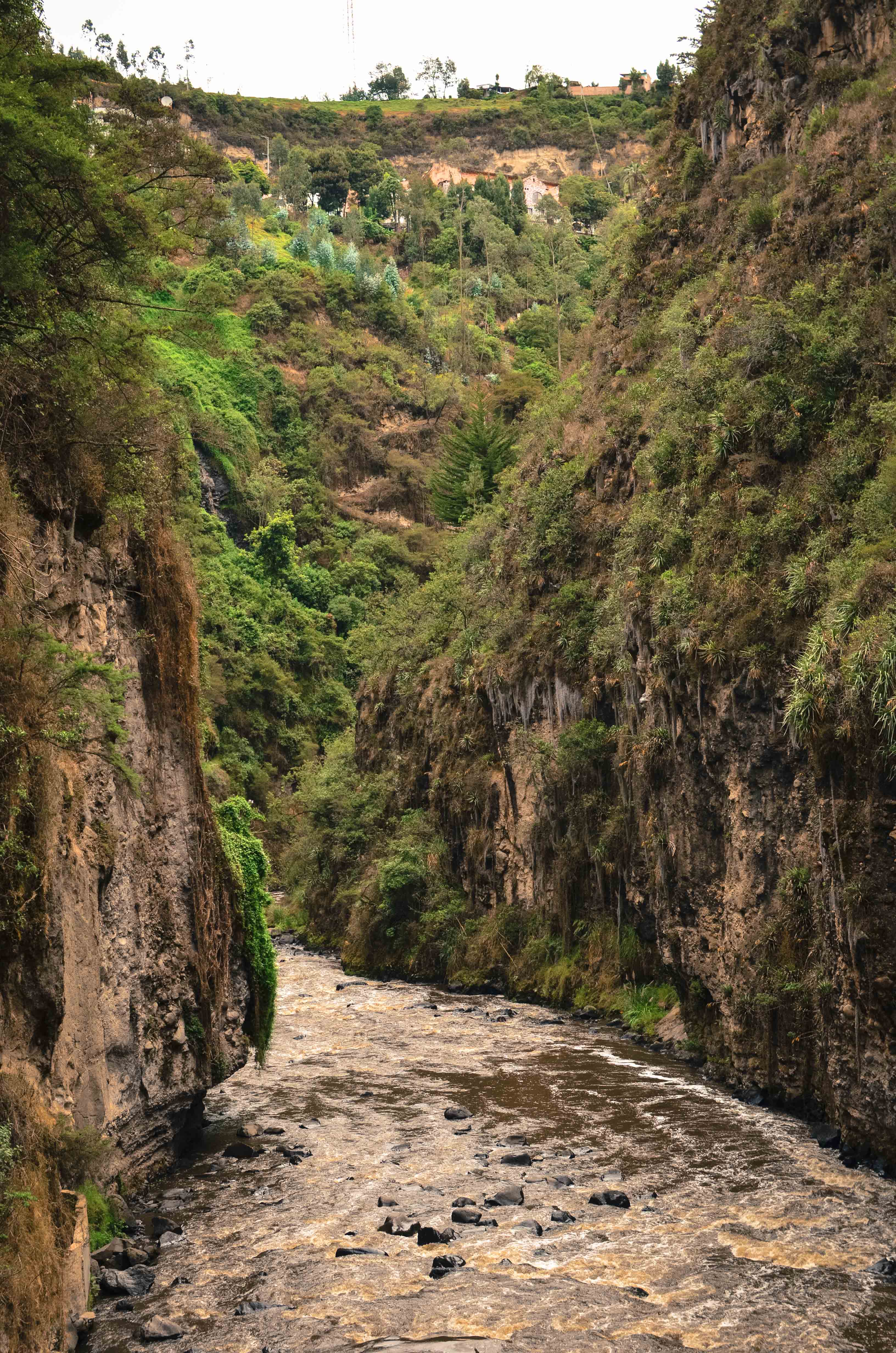 The town we explored almost felt abandoned. There were small shops with their doors open and lights on, but appeared to be catering to the locals that lived there year round. Small groups of children were playing soccer on beautiful cobblestone walking streets, with the faint sound of Latin music playing out of open windows. The rows of buildings that lined the streets all appeared to be targeting large groups of tourist crowds, which were noticeably missing, thus almost every single one was closed and didn’t look like they were going to open until their customer base returned. The buildings were typical of the Spanish Colonial style architecture, with some large church like structures that appeared to be weathering away without much indication of plans for restoration. My heart pined to explore past it’s huge, old wooden doors to see what kind of history was held within it’s arched concrete walls. A path meandered down into the gorge where the church was located, and we soon found ourselves staring in awe at the sight in front of us.