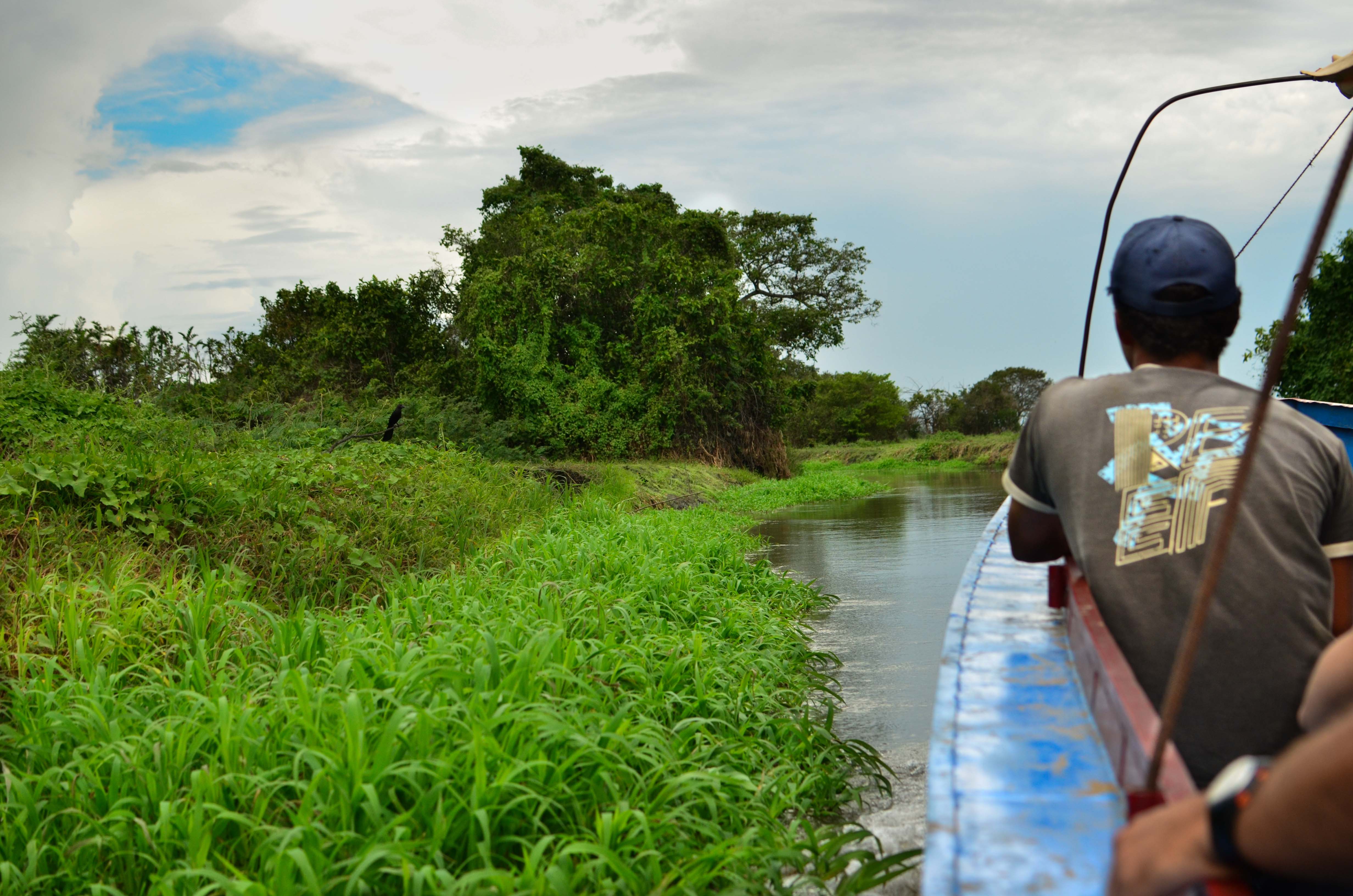 After we sweated through a few afternoons worth of shirts we caved into temptation and took a riverboat ecotour. The tour consolidated all tourists who agreed to the terms and conditions into one boat, which was probably borrowed from a friend of our tour guide. As we took off upstream, Mompos faded away and the rural farm life became illuminated in that classic yellow afternoon glow. Dug out wooden boats rested up against the silt banks next to hand dug mud stairs that disappeared up into the fields above. Our boat slinked off the main river channel and into a narrow tributary on the side. Naked kids were playing in the shallow muddy waters and gave out friendly waves as we zipped past, returning the gesture with the wake of our boat. We were given glimpses of their world from vantage point of the meandering stream that was also teeming with wildlife. Our guide was constantly pointing out the hundreds of iguanas hanging out in trees, cows grazing along the waters edge, floodplain birds in the grass, and large falcons looming over the sliver of water we were floating down. Remote villages that were completely cut off from the rest of the world came and went out of our vision. Imagining what life was like living in a Colombian version of Huckleberry Finn wasn’t hard because we were peering right into it. I can still picture the tall water grass swaying in the breeze and the sound of insects swooning in the thick summer air. We eventually broke out of the stream into a wide-open bay filled with lilly pads just as the sky began to darken. Our guide killed the engine and told us all to jump in for a swim. It’s moments like these when you question the safety of being on a “tour” with a “guide” but eventually we all ended up in the water. The current was strong and instantly swept us away from the boat. Tiny, acrobatic fish were pecking at our limbs when we stopped treading water and would often leap out of the water right over our heads. I remember having the constant fear that one of these silver bullets was going to careen straight into my face. My feet sank about 6 inches into the muck on the bottom of the muddy river and that eerie feeling of not being able to see anything combined with sludge between toes flooded my veins. With dark clouds looming overhead, we boarded the boat and puttered back to where we came from, passing by fishermen punting their boats with long, thin sticks heading home for the day. I let go of the last glimpses of the simple, separate life before we pulled up to the shoreline of Mompos once again.