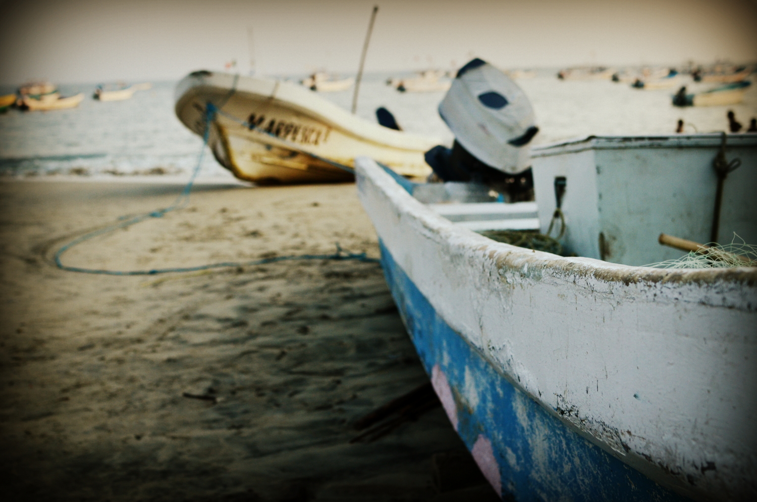 For the first few days it was just us and a small group of surfers in this slice of heaven. Days were spent with complete disregard for time paying very close attention to relaxation and letting our minds run out of thoughts until nothing existed. We thought we had successfully dodged Semana Santa in our beautiful bubble. By day four we had noticed that a younger college crowd began to arrive like ants marching to melted candy. They came in groups and all set up tents, which made the solitude of this place a little more interesting at first. As each day passed by we watched our paradise slowly melt away. It was like finding an oasis in the desert and watching it dry up before your eyes. Spring break came in like a tidal wave and by Tuesday and we were in the thick of it. Tents now inundated every thatched roof restaurant in sight and the beach became infested with bodies and bottles of booze. We did our best to escape by crossing the channel to the other side where pristine beaches were still barren to try and avoid the reality of the new situation. Nights were now filled with bad versions of beach rave parties, bon fires with stumbling drunks, grandfathers wearing g-strings, and beach vendors trying to earn a buck selling anything from sardine tacos to full size hammocks. When Friday came both Elissa and I felt that the age-old adage of “if you can’t beat ‘em, join ‘em” was appropriate. We determined the only way to feel at peace with the environment here was to drink pina coladas and 40 oz coronas while observing the madness. This was day three of “party mode” for the crowd and by now they all began looking like mutant versions of their previous selves. Their young bodies were now covered in bruises, bug bites, and impressive sunburns. As this thought passed through my mind I realized that the virus that spread through crowd had infected us as well, and we had become one of them too. On a walk through some thickets Elissa and I had come across some indigenous plant that locals called “the tiger’s hand” and had a poison-ivy like reaction on her legs that also showed up on my knee, stomach, and wrist. We also had a healthy dosage of sun and been worn out by days of watching waves curl, boogie boarding, and late nights. We were now worn down images of ourselves, caricatures in our own bodies.