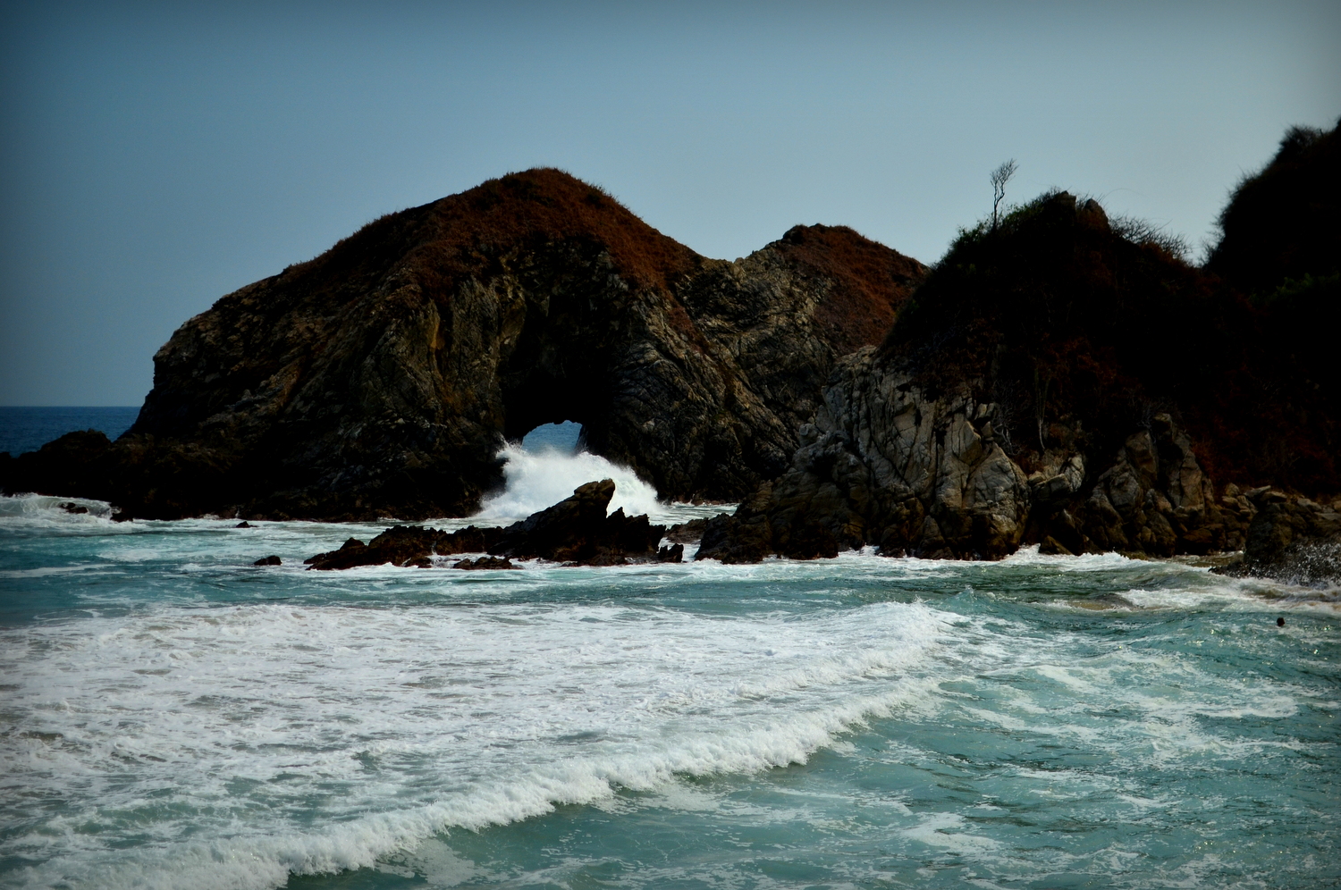 Mazunte’s unreal turquoise waters were best observed along the little hike to Punta Cometa just west of it’s beach. This 30 minute adventure brought you up and down some of the most spectacular cliffs overlooking coves, hidden beaches, and coastal ridgelines bearing giant cacti. I did not bring my camera for our sunset walk and immediately regretted this decision. Elissa and I sat on a rocky ridge that separated the headland from the arm of an ancient bedrock spit and took in another gorgeous Mexican sunset. The night life in Mazunte was relaxed and fun and we spent the evening listening to live reggae and acoustic versions of classic rock tunes. The following morning I took a quick hike back to Punta Cometa but the natural lighting and magic was just not the same. Departure from these dreamy sand havens was tough but we had another intense bus trip through the mountains to endure to get back to Oaxaca. The universe loves balance.