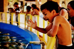 The next and final beach we sought out was Mazunte. It was a close neighbor of Zipolite and took about 10 minutes by truck to reach. We fell victim to staying at a thatched roof hotel/restaurant/bar on the beach due to the heat and discovered that we were back to bucket showers and toilets post payment. But Mazunte’s beach more than made ammends and was indeed gorgeous, carved out of the rocky headlands resembling giant stretched out horseshoes leaving sand behind for feet and bodies to enjoy. The bedrock tongues stuck out past high tide levels, isolating little sections and giving them a “next town over” feel. Mazunte is also home to a turtle reserve compound raising and releasing turtles back into the ocean. We spent hours watching the first part of their lives unfold in their temporary homes. Mazunte’s waves were bone-crushing and broke right onto the sand itself. Body surfing here should be performed with caution and the expecation that you will be tossed around like clothes in an industrial-strength washing machine. This was a prime location for skim boarders because beach shelf was kind of a like a steep ramp that rolled right to the water.